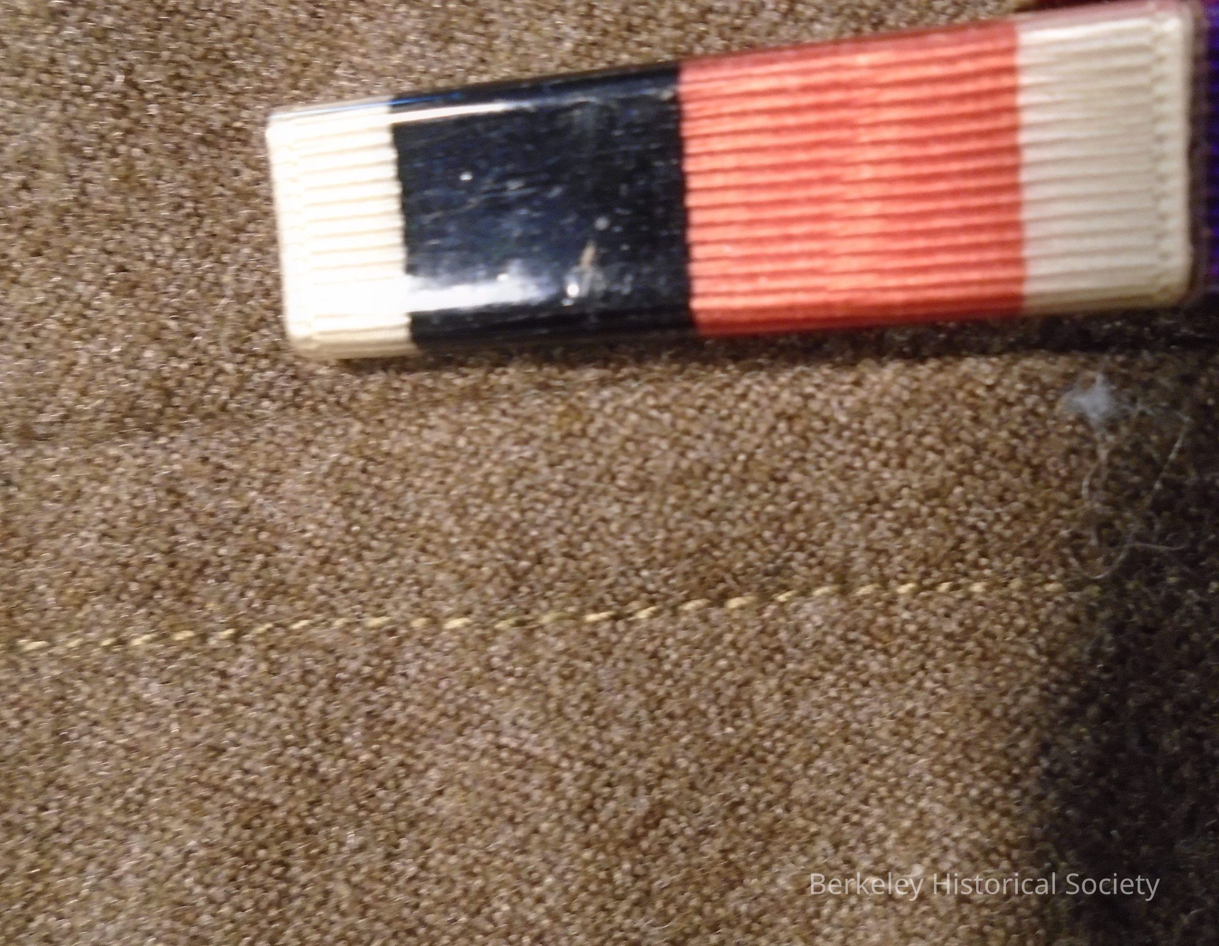 White, black & red German Occupation Ribbon on plastic/metal base with pin/tack on back. Covered in plastic and attached to Victory and European Theater ribbons. Worn on U.S. Army World War II Ike jacket belonging to William L. Close, Jr. #39048317, Technician Third Grade, 309th Infantry Regiment, Army of the United States. (See 2019.005.1) One of 11 removable pins/medals.Dimensions