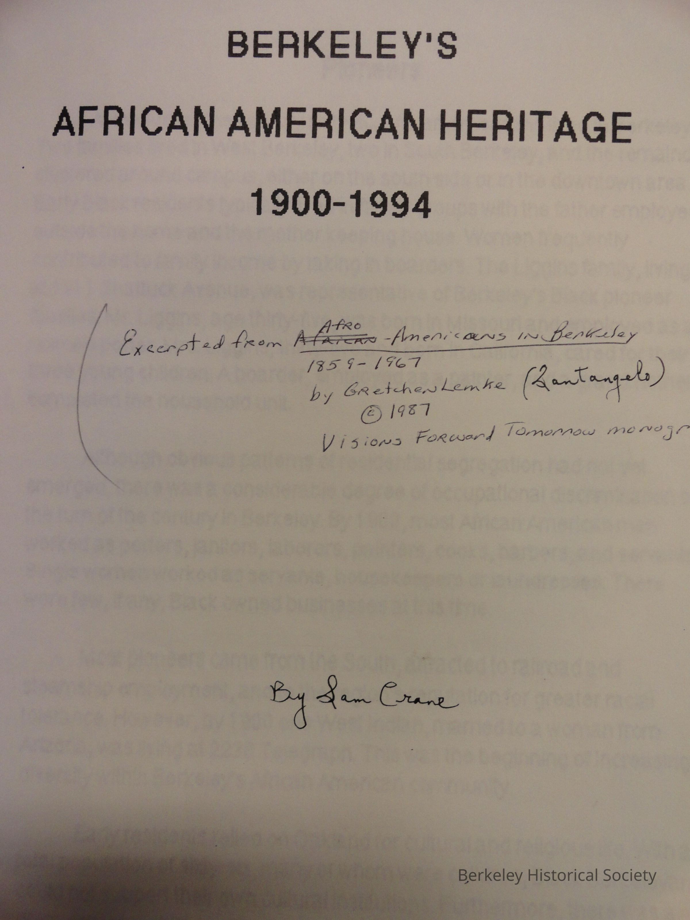 Berkeley's African American Heritage,1900-1994Entry/Object ID