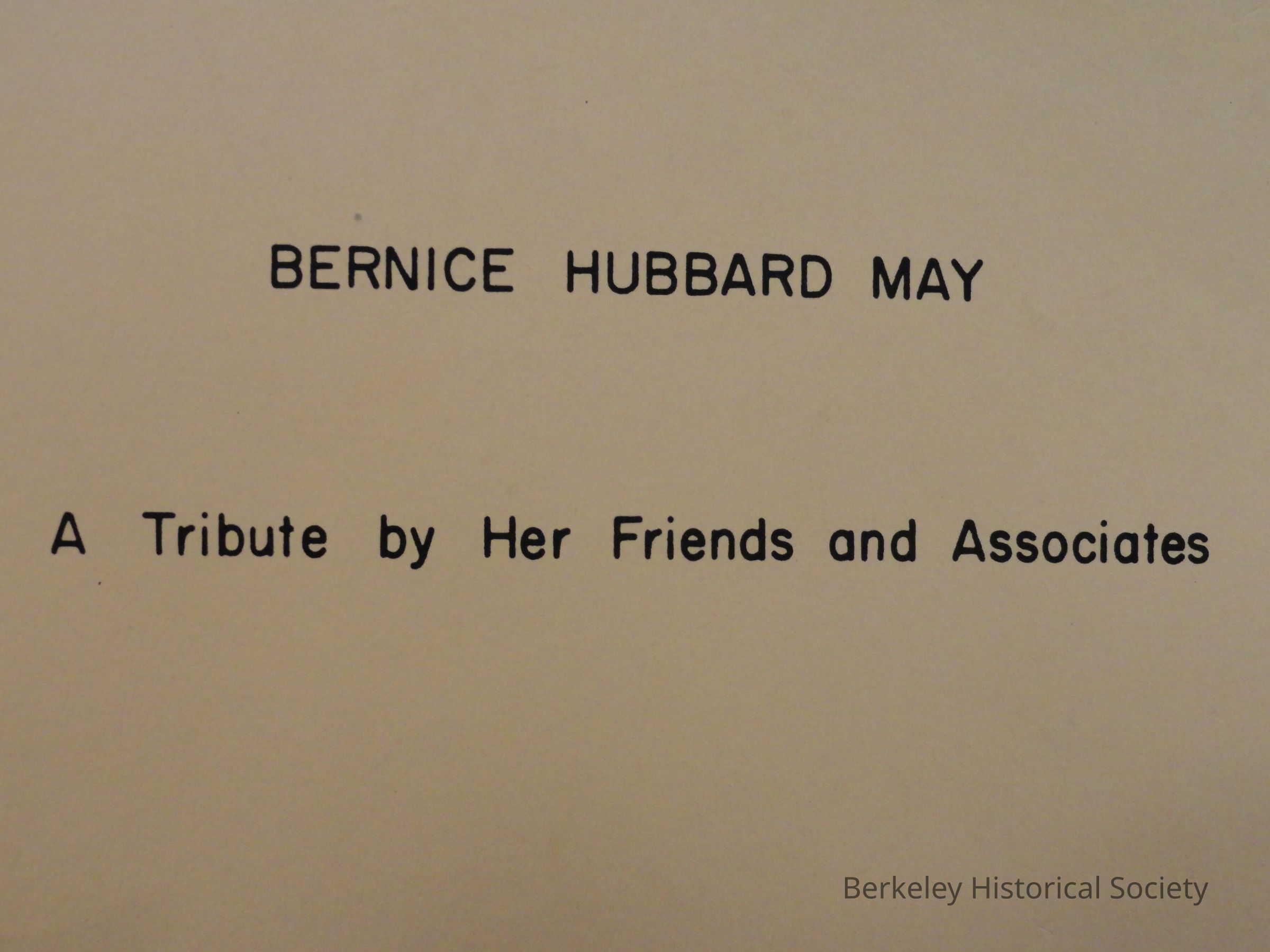Bernice Hubbard May tributes (CT275.M45)Entry/Object ID