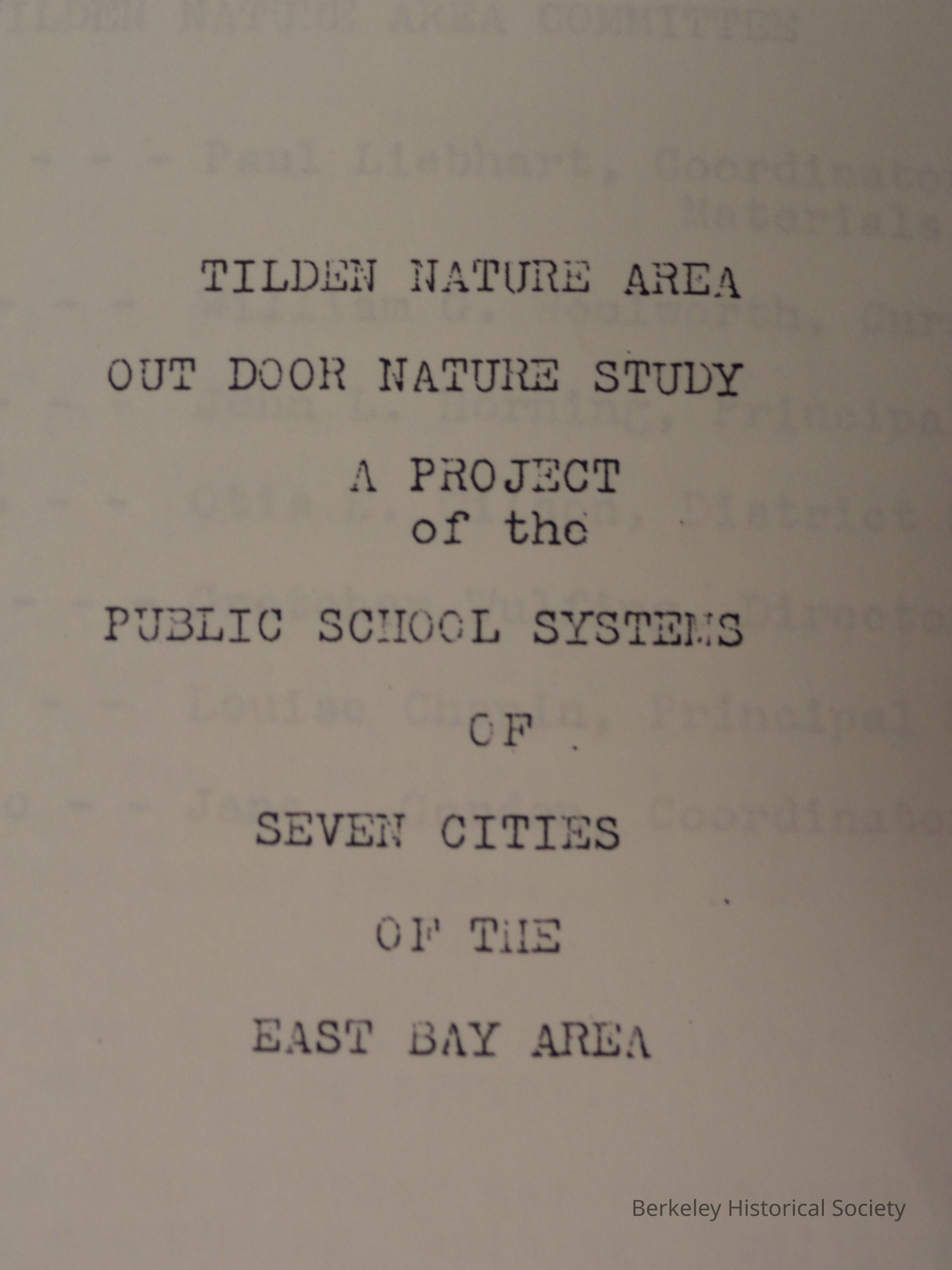 Tilden Nature Area, Outdoor Nature Study; typescript, 1949,
