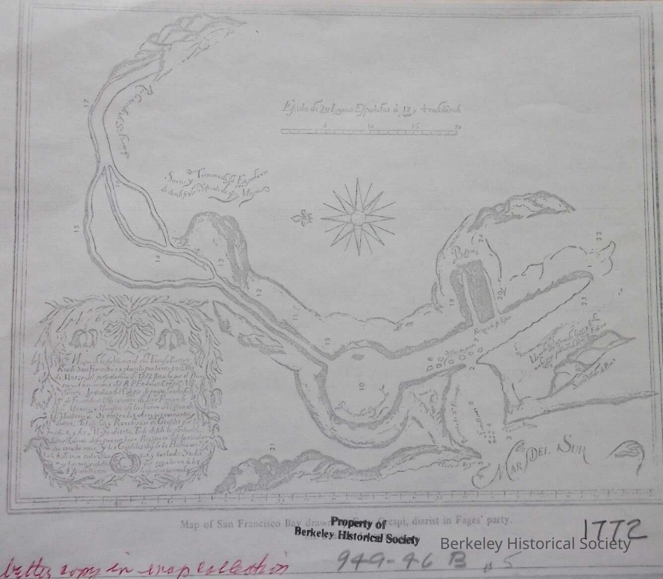 Mapa de lo substancial del famoso Puerto y Rio de San Francisco [Calif.] : explorado por tierra en el Mes y Marzo del presente año de 1772 / facado por el Diario, y observations del R.P. Fr. Juan CrespíEntry/Object ID