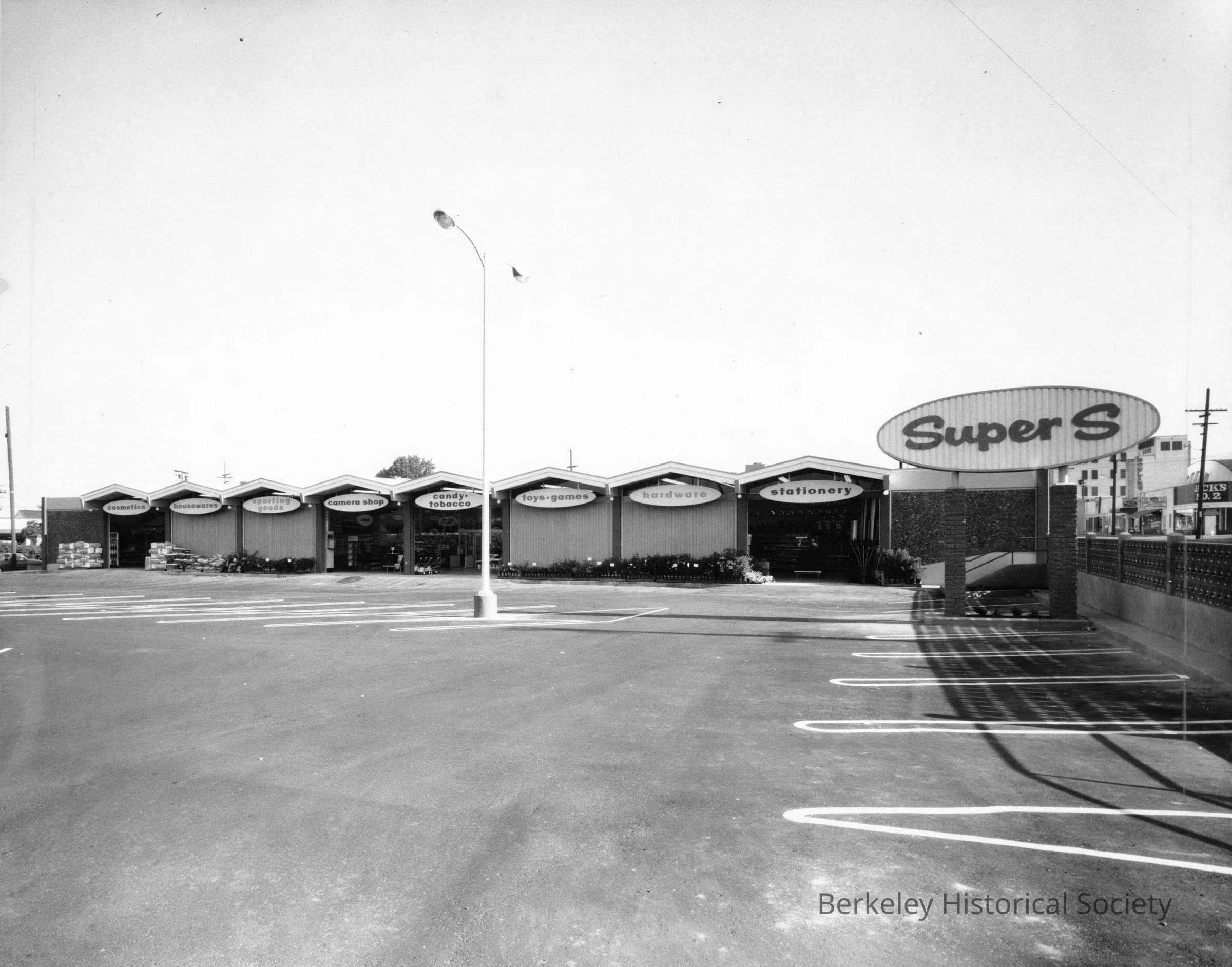 Super S store Hardware store, parking lot. Shattuck Avenue at Oregon. South Berkeley