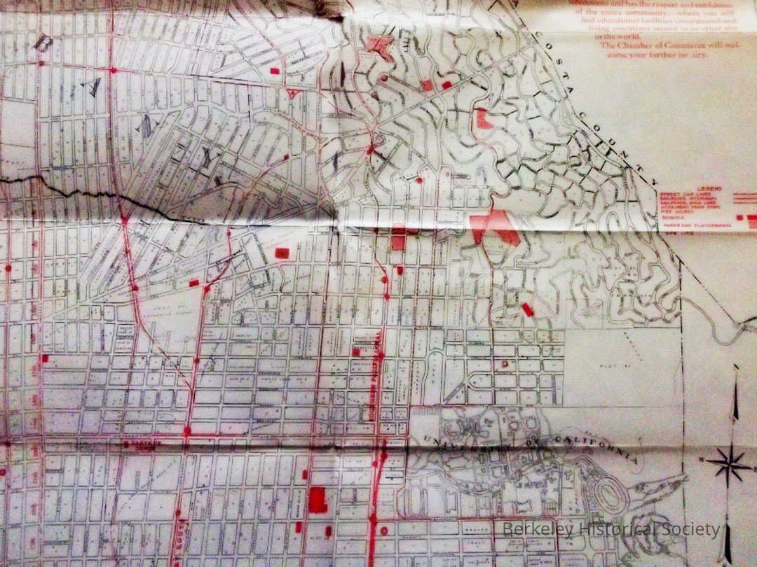 A folded mao with map on one side with street index, photos on reverse side. Provided by Berkeley Chamber of Commerce. Drawer FB-3, Folder 3f