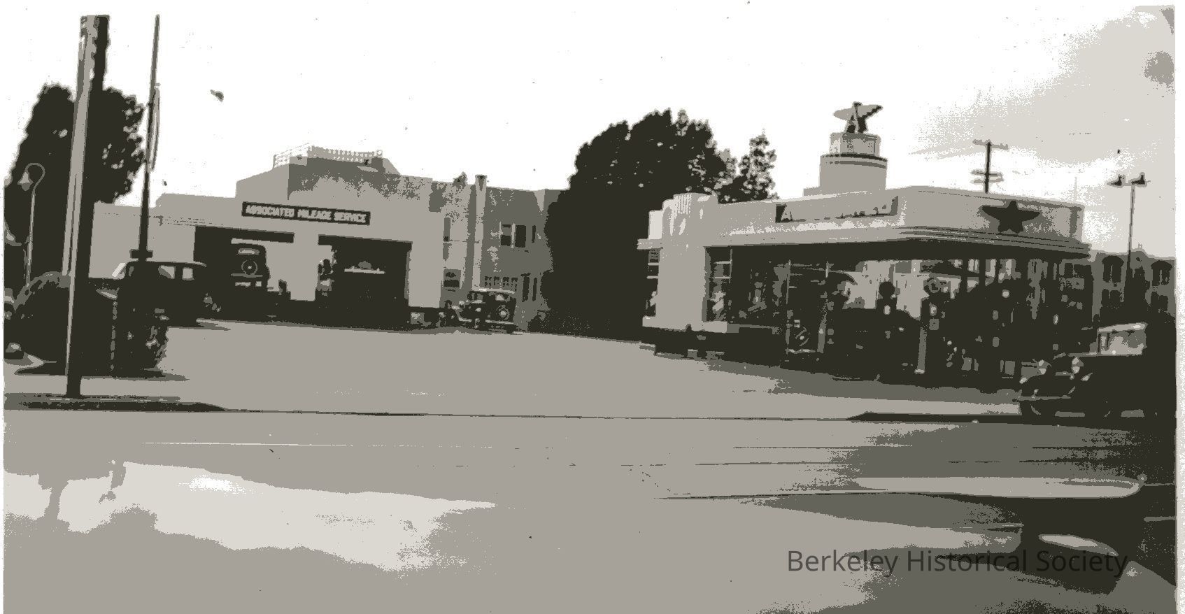 Gasoline station and lubrication center on Oxford Street at Hearst Avenue.