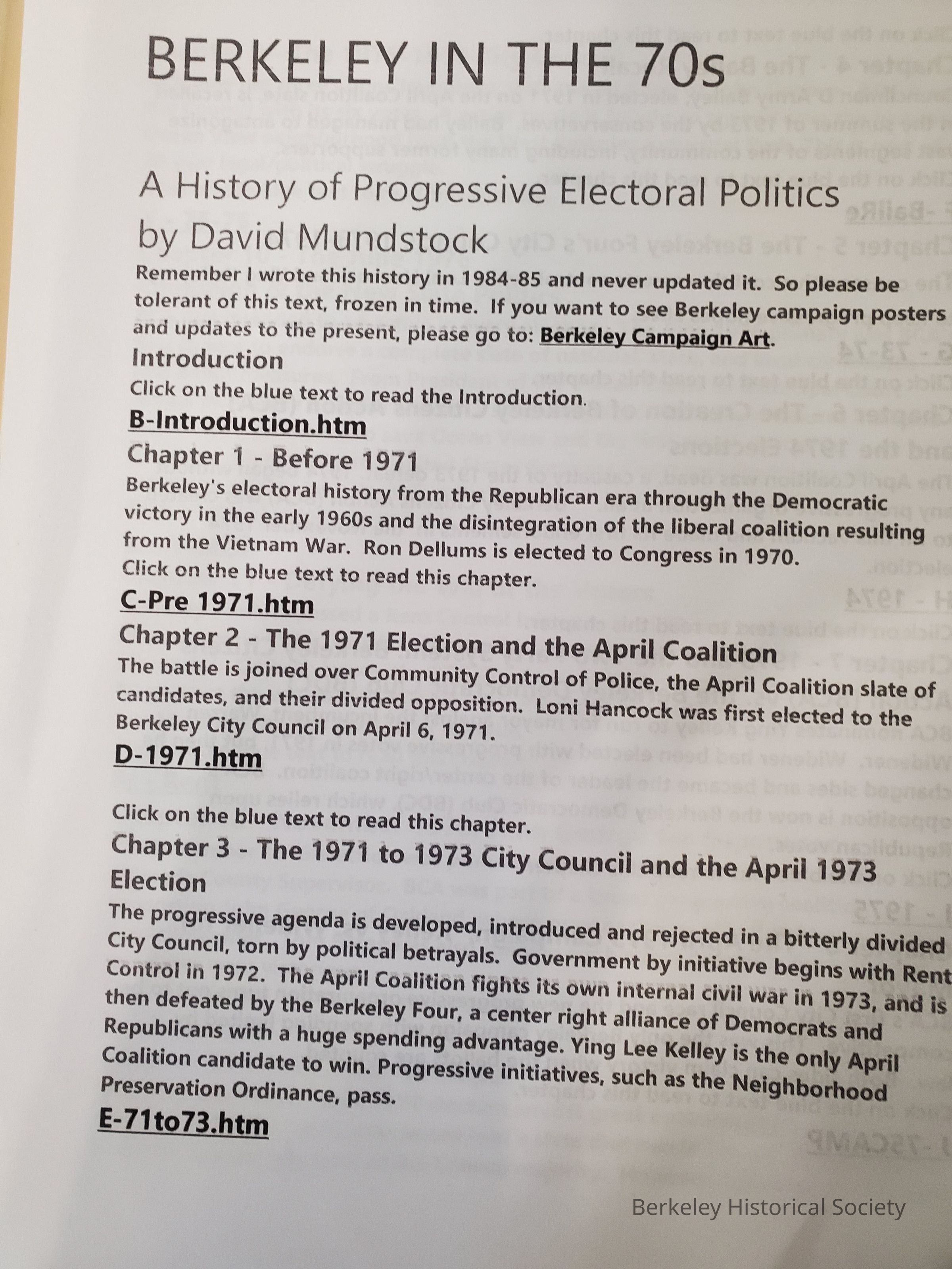 Berkeley, Calif. -- Politics and governmentArchive Details