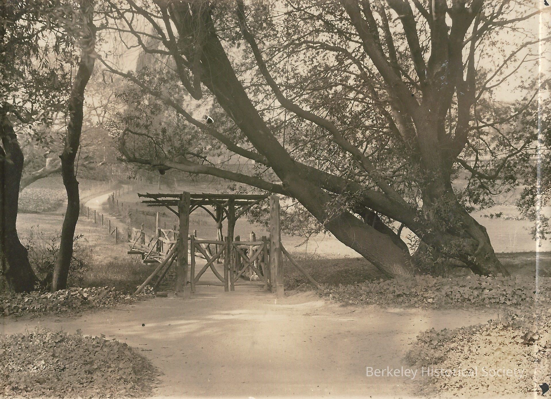 Gate and bridge on University of California campus. Near Faculty Glade?