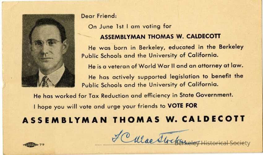 Vote for Assemblyman Thomas W. CaldecottEntry/Object ID
