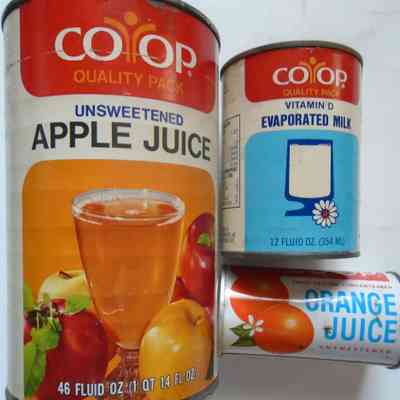 #2. coffee can, #3. Unsweetened Apple Juice, #4 Evaporated Milk, #5 Concentrated Orange Juice.Made/Created