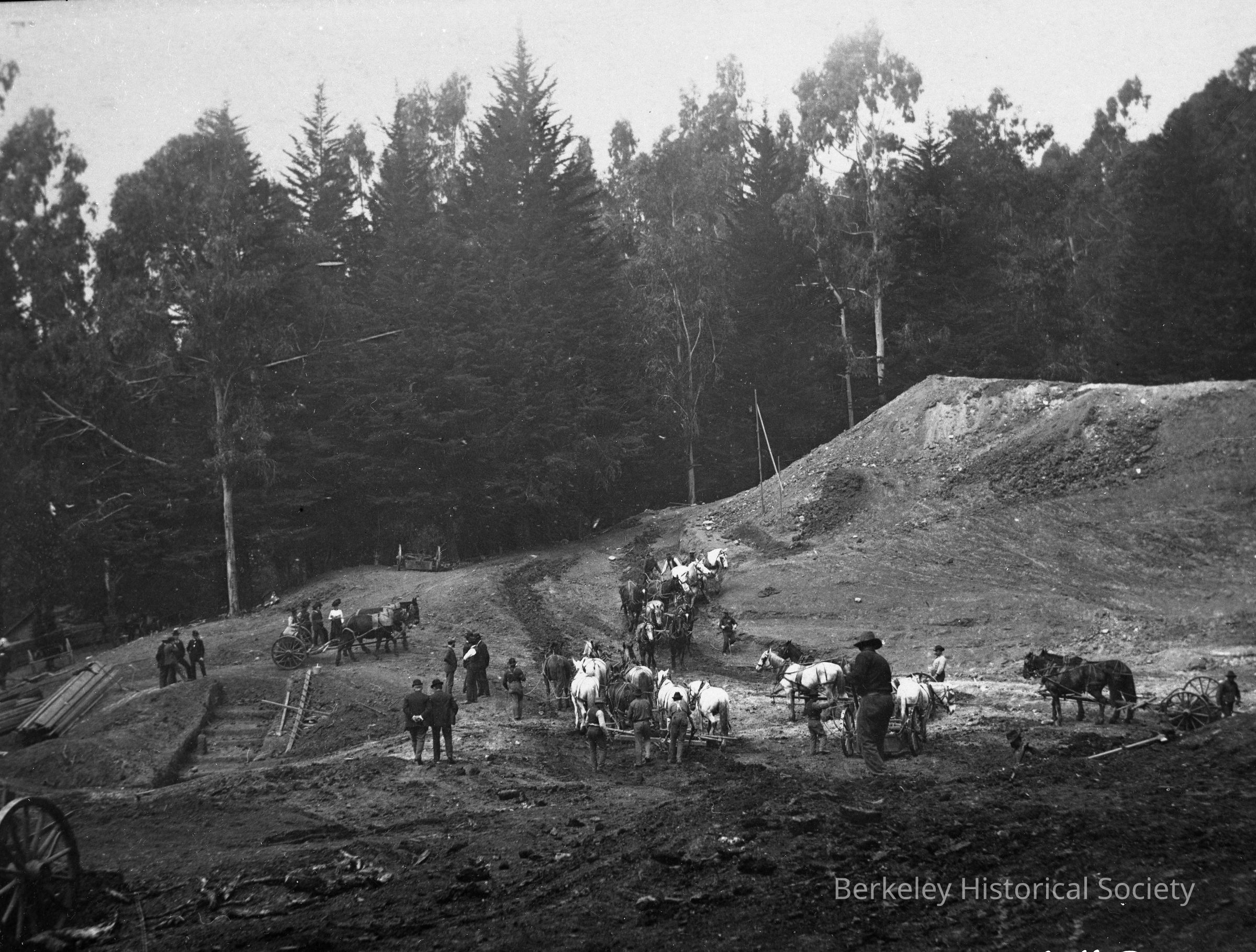 Greek Theatre [1903] under construction 1902 Workman and horses.