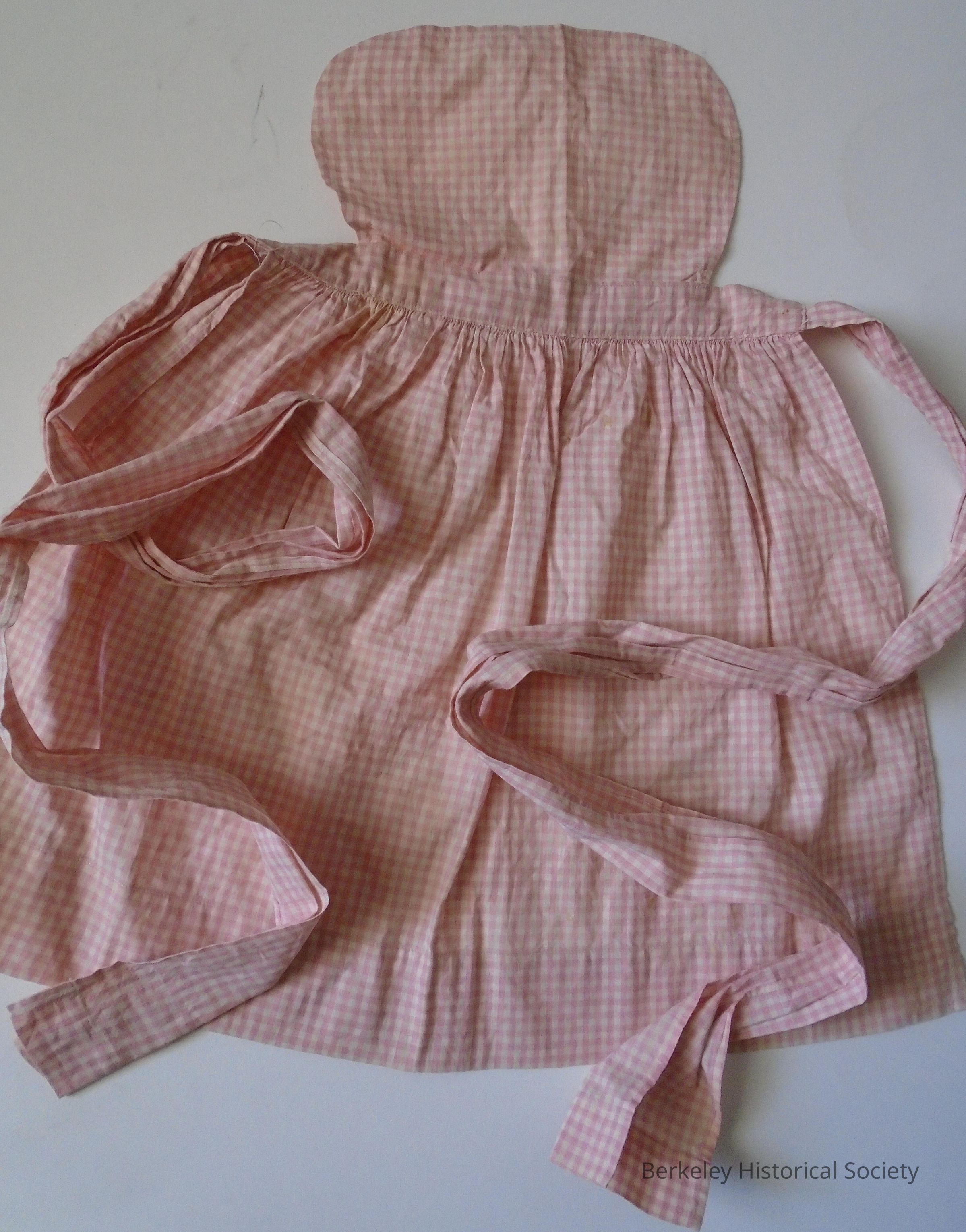 Young girl's gingham pinafore (age 5-6). White and pink checked. Cotton. The De Fremery family of Berkeley.