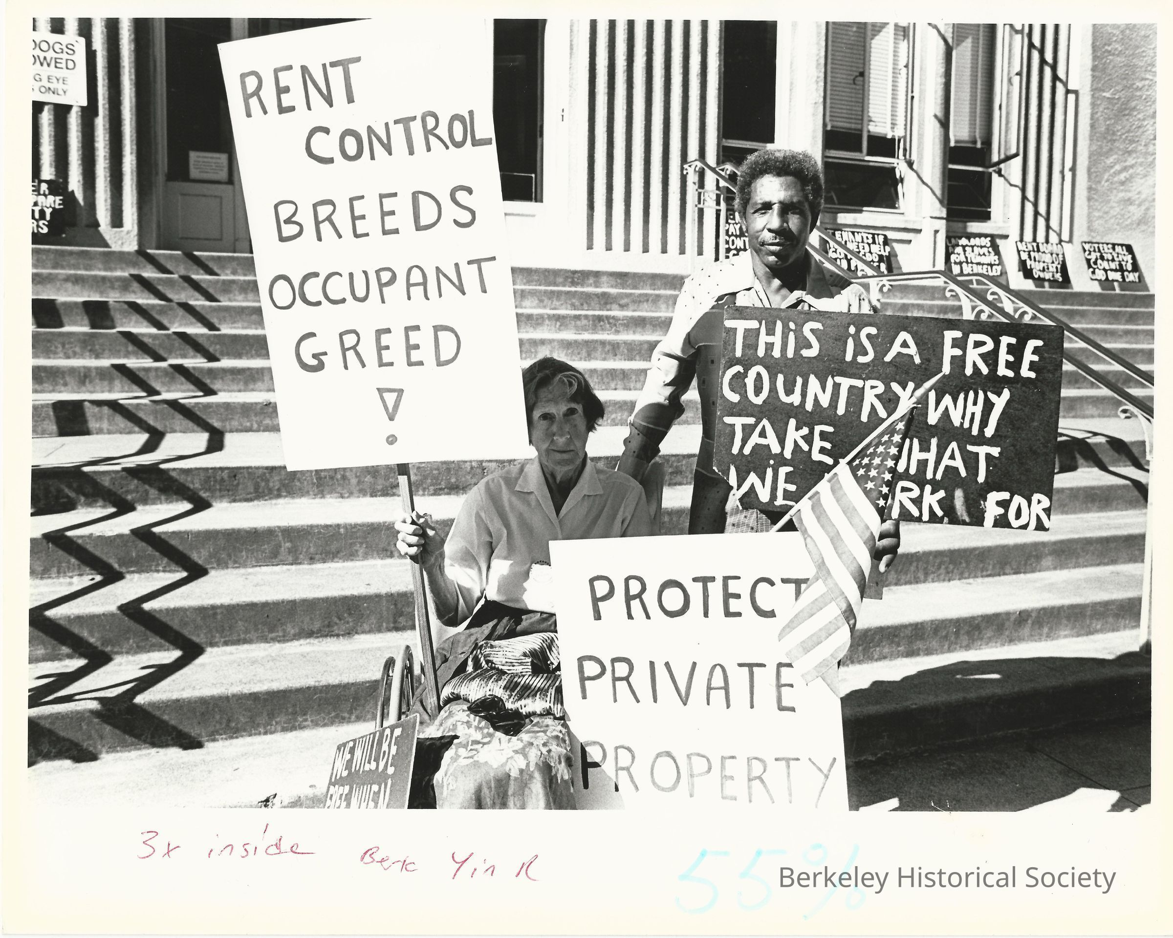 Picture with Clair Merrison [sp?]: both holding signs against rent control. n.d.