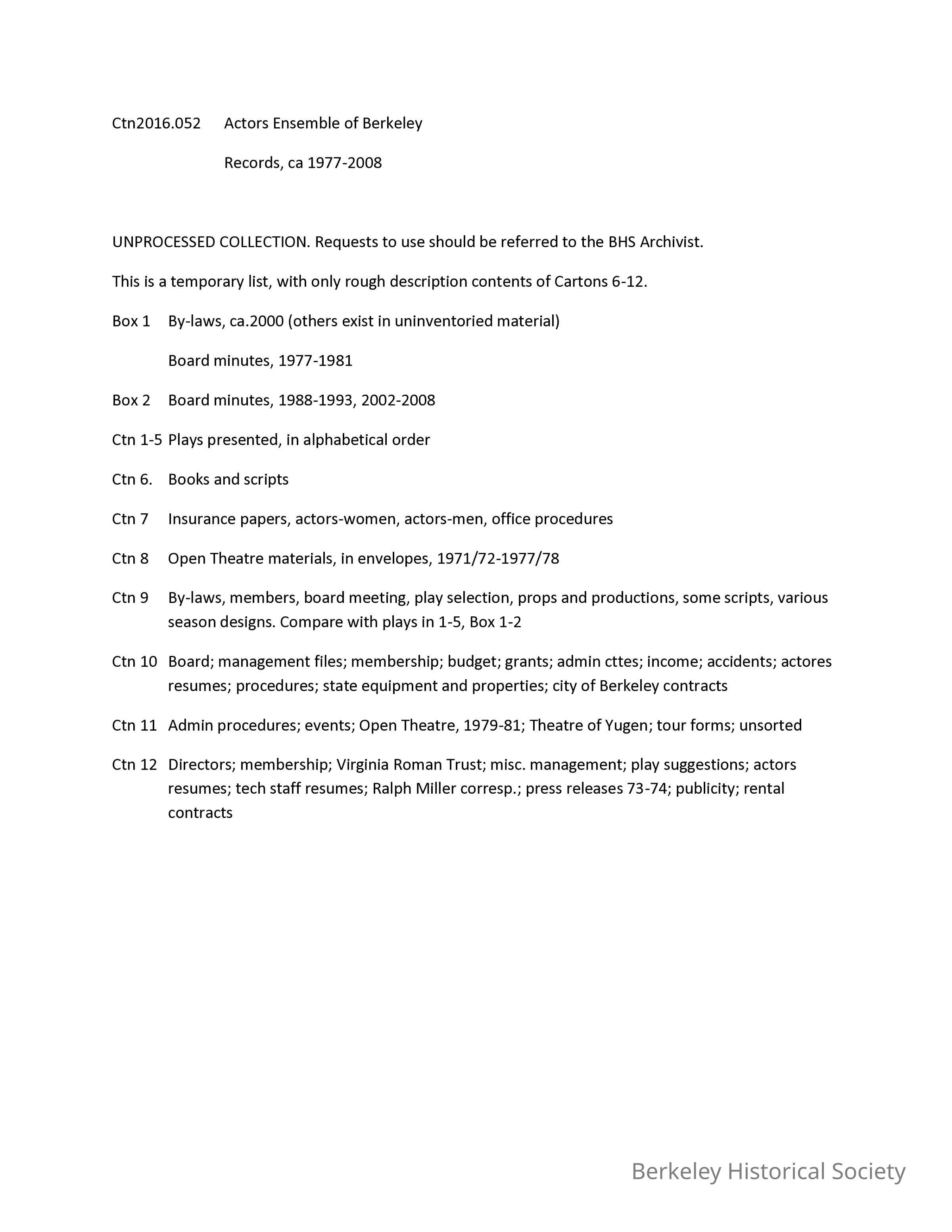 Theater -- California -- Berkeley , Performing artsArchive Details