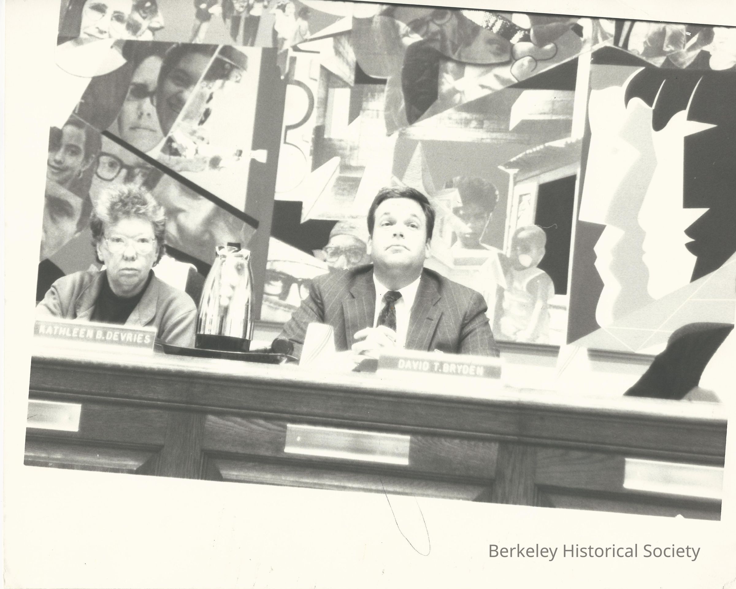 Berkeley City Council chamber; Kathleen B. de Vries to his side.