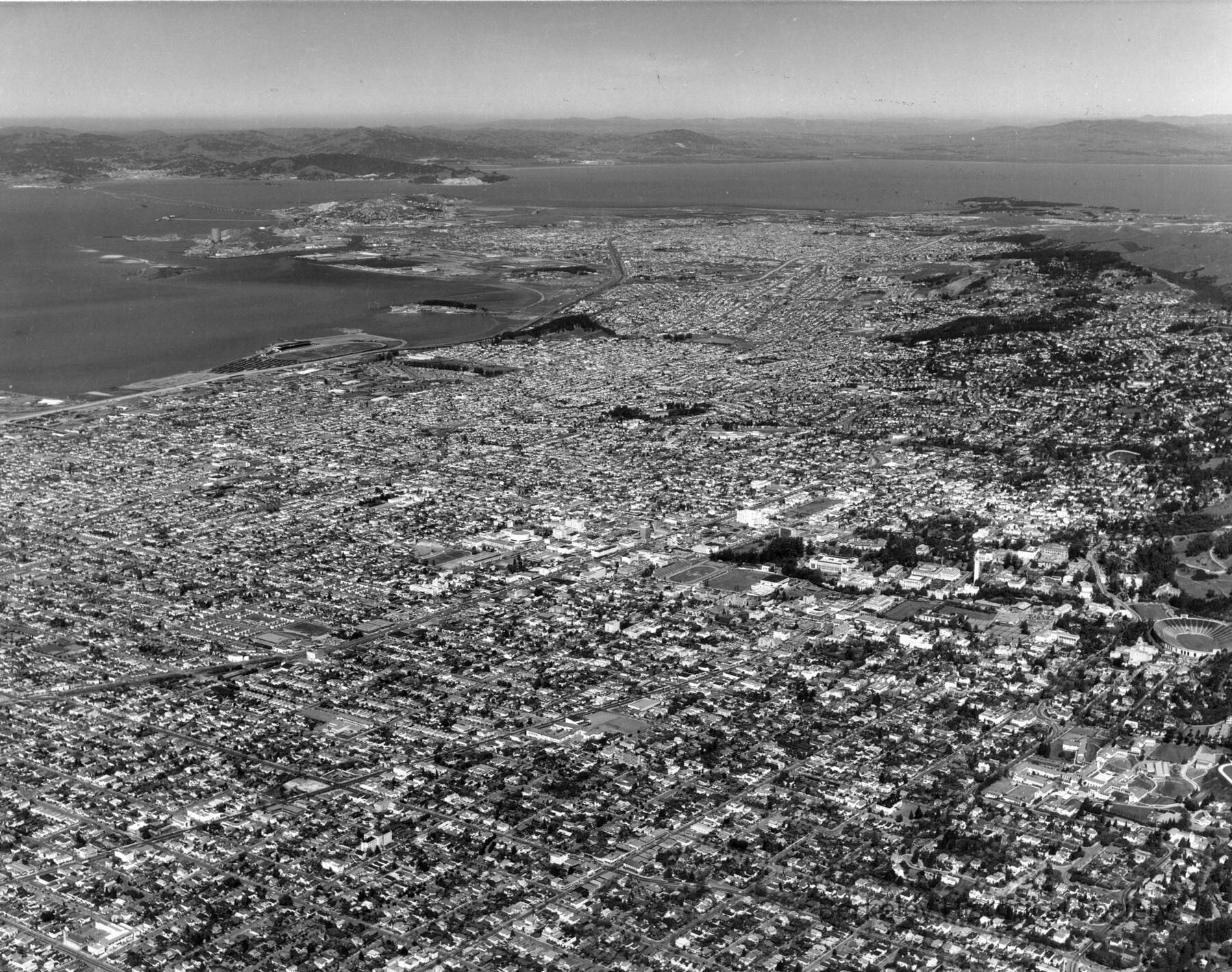 View to northwest from above southeast Berkeley; California School for the Deaf in lower right corner.Lexicon