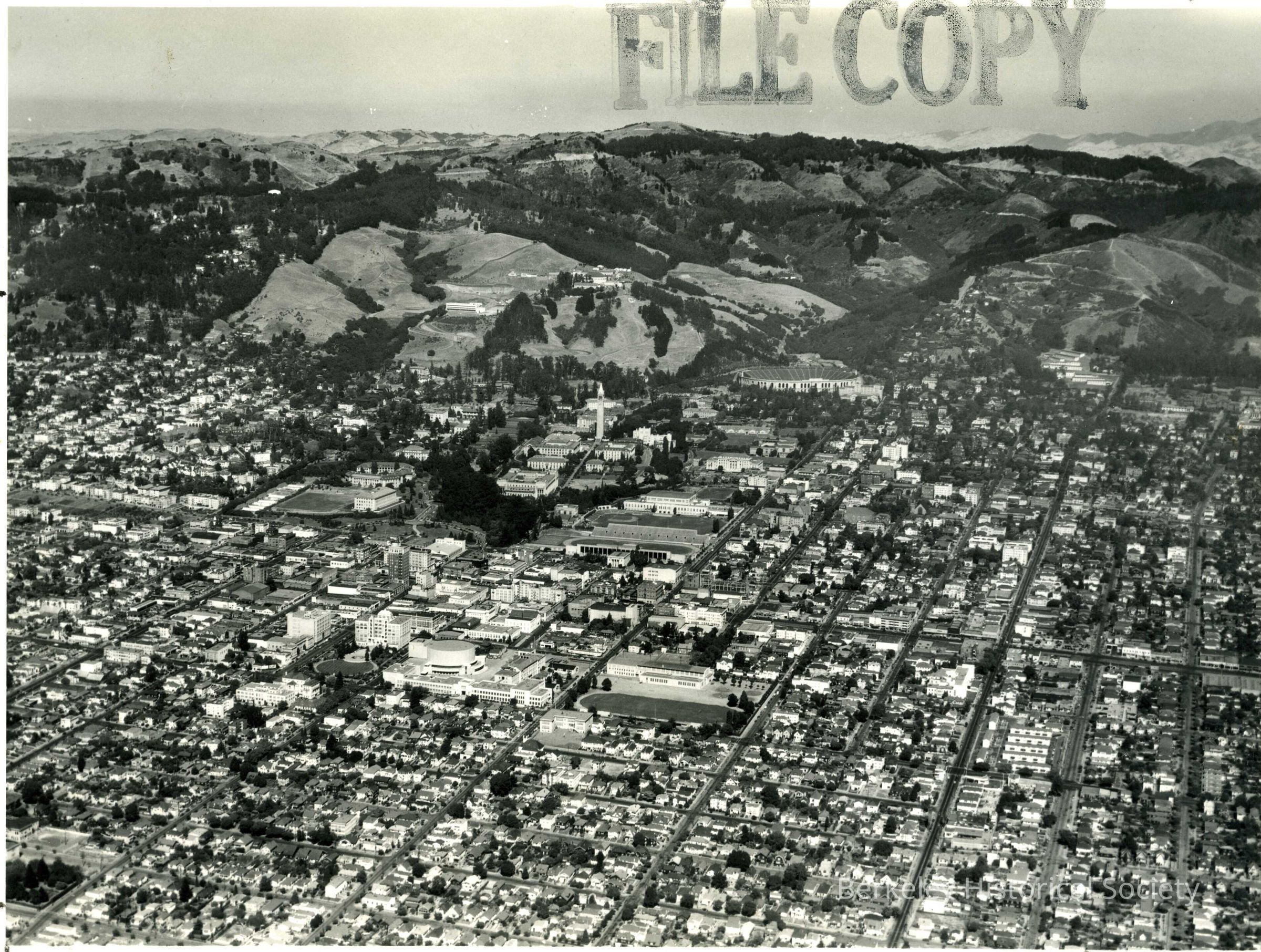 Aerial view of downtown and hills, 1915
