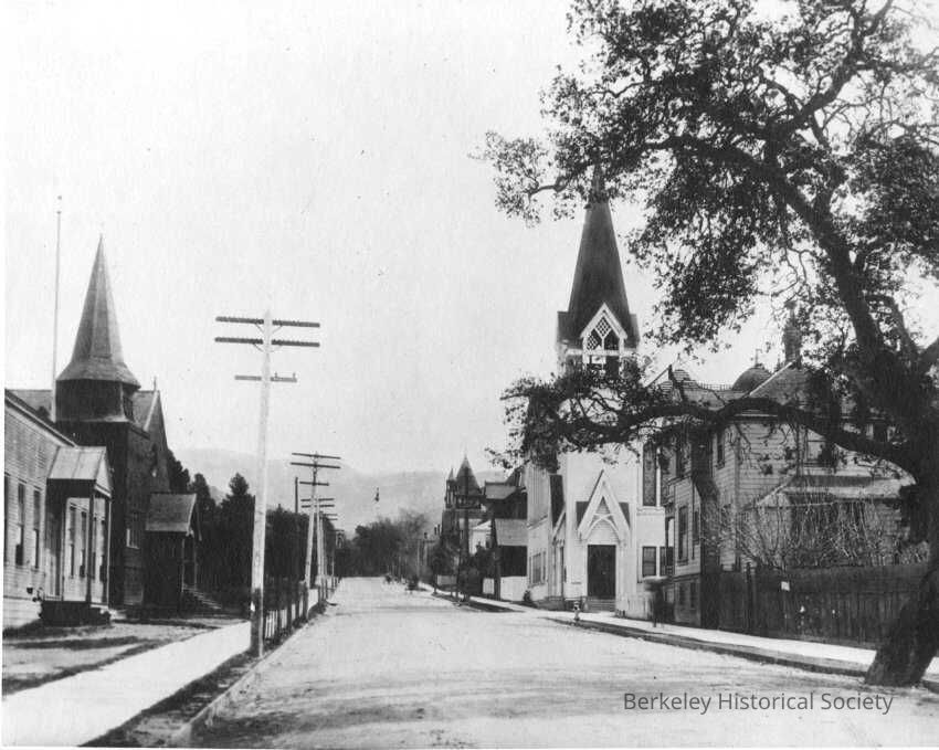 Allston Way east of Shattuck, Presbyterian Church on left? Baptist Church (see 113-190-9161)