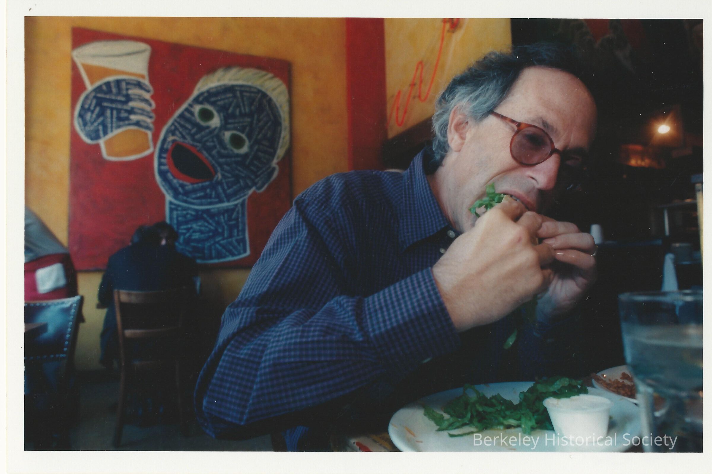 3 items. On in Cody's Bookstore with Pat Cody; 2 color photos, one eating at Larry Blakes, one with Larry ?