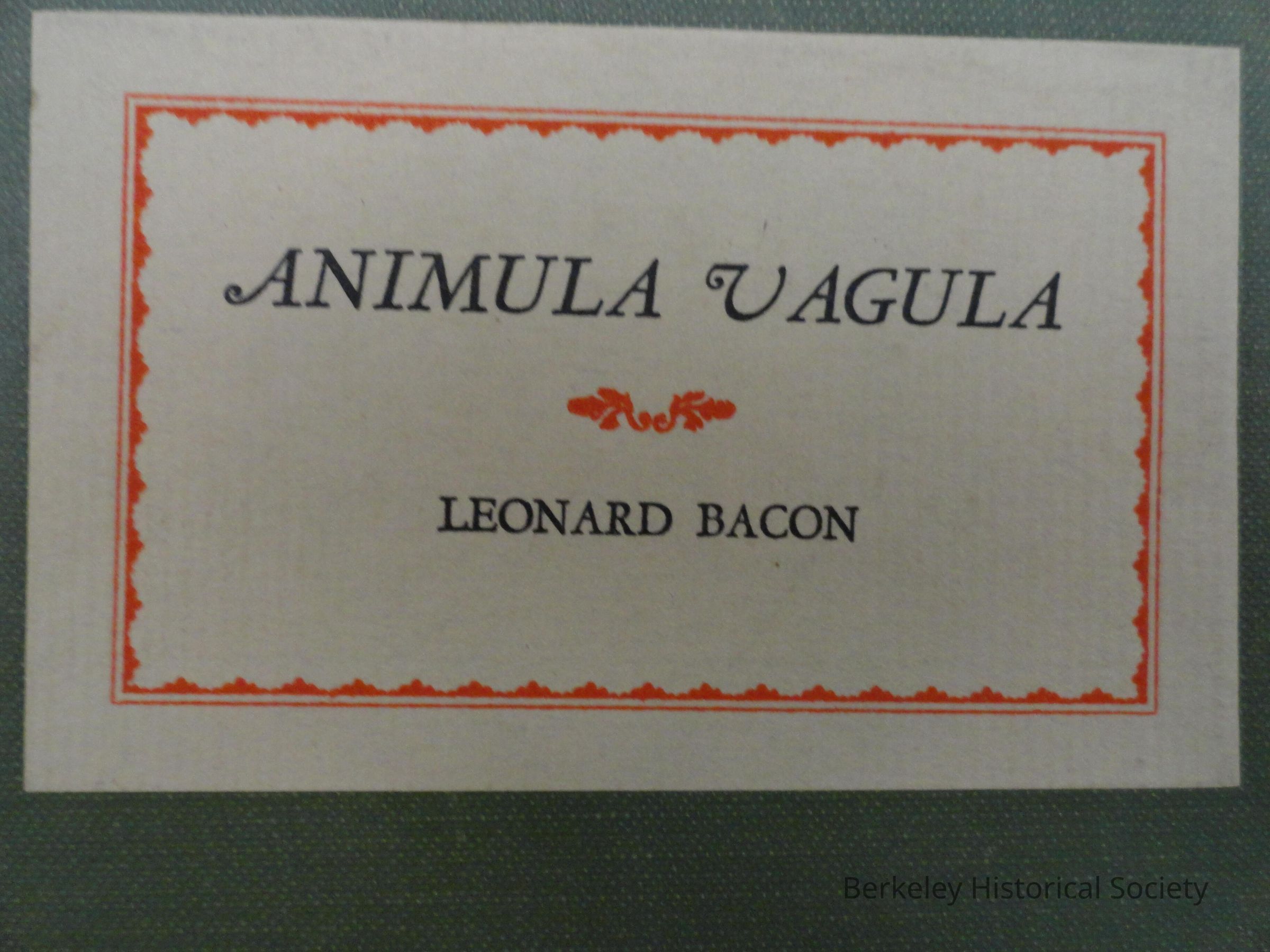 Animula Vagula Animula Vagula [Poetry] (PS3503.A196 A8 1926)Entry/Object ID