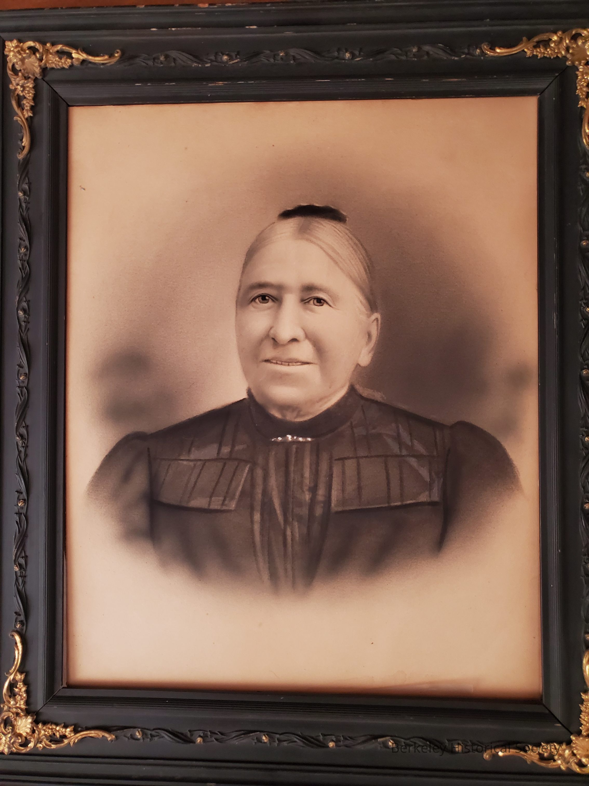 Portrait of Anne Dunnigan Curtis in wood frame with added metal work at corners and carving on other faces of frame.Dimensions