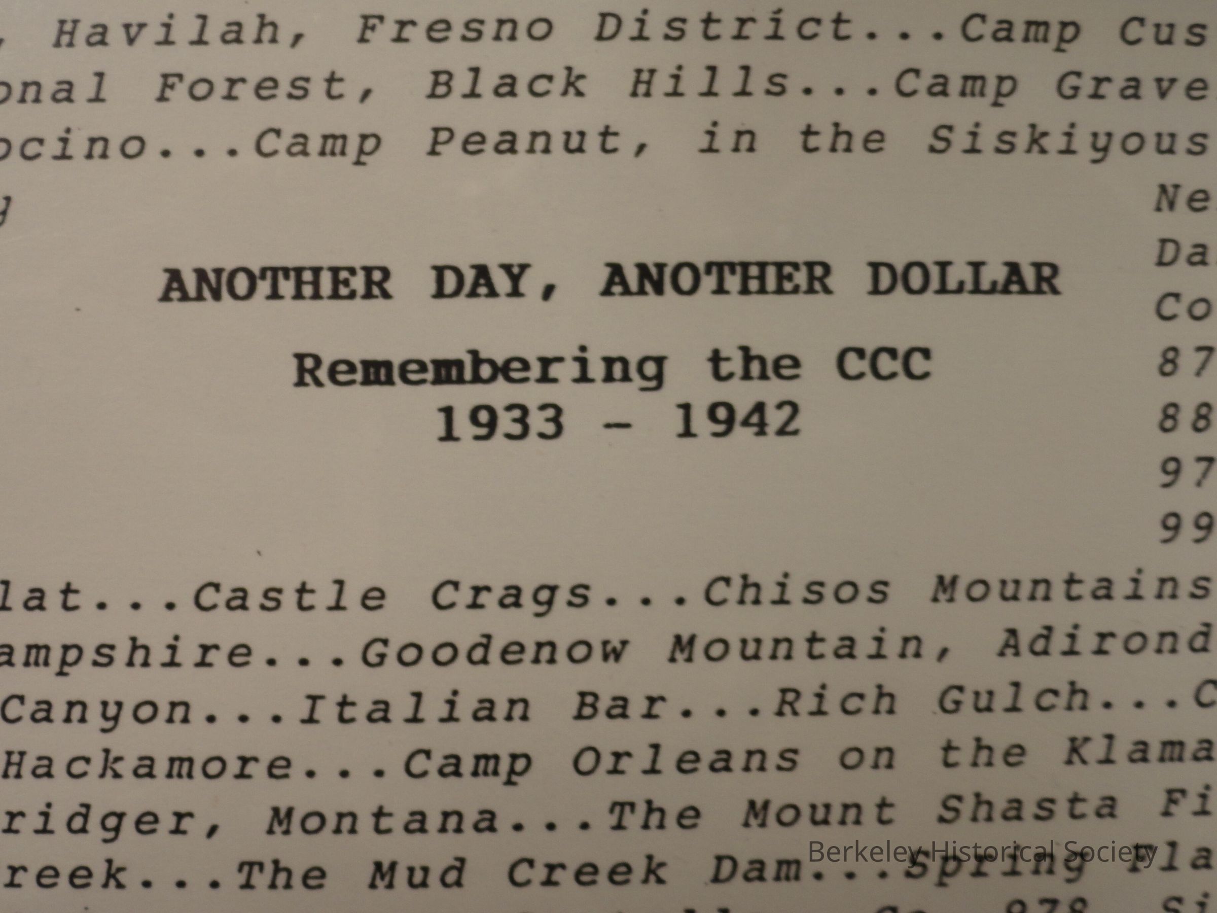 "Civilian Conservation Corps (U.S.) -- History."Other Names and Numbers