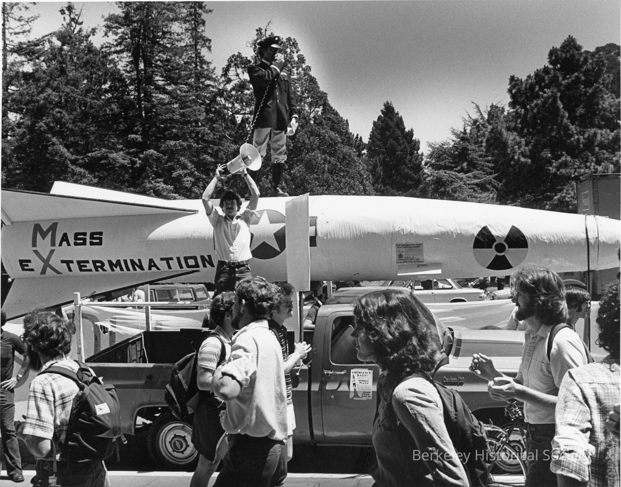 General Waste More Land standing atop a missile mounted on a truck. at Oxford and Center Streets.Other Names and Numbers