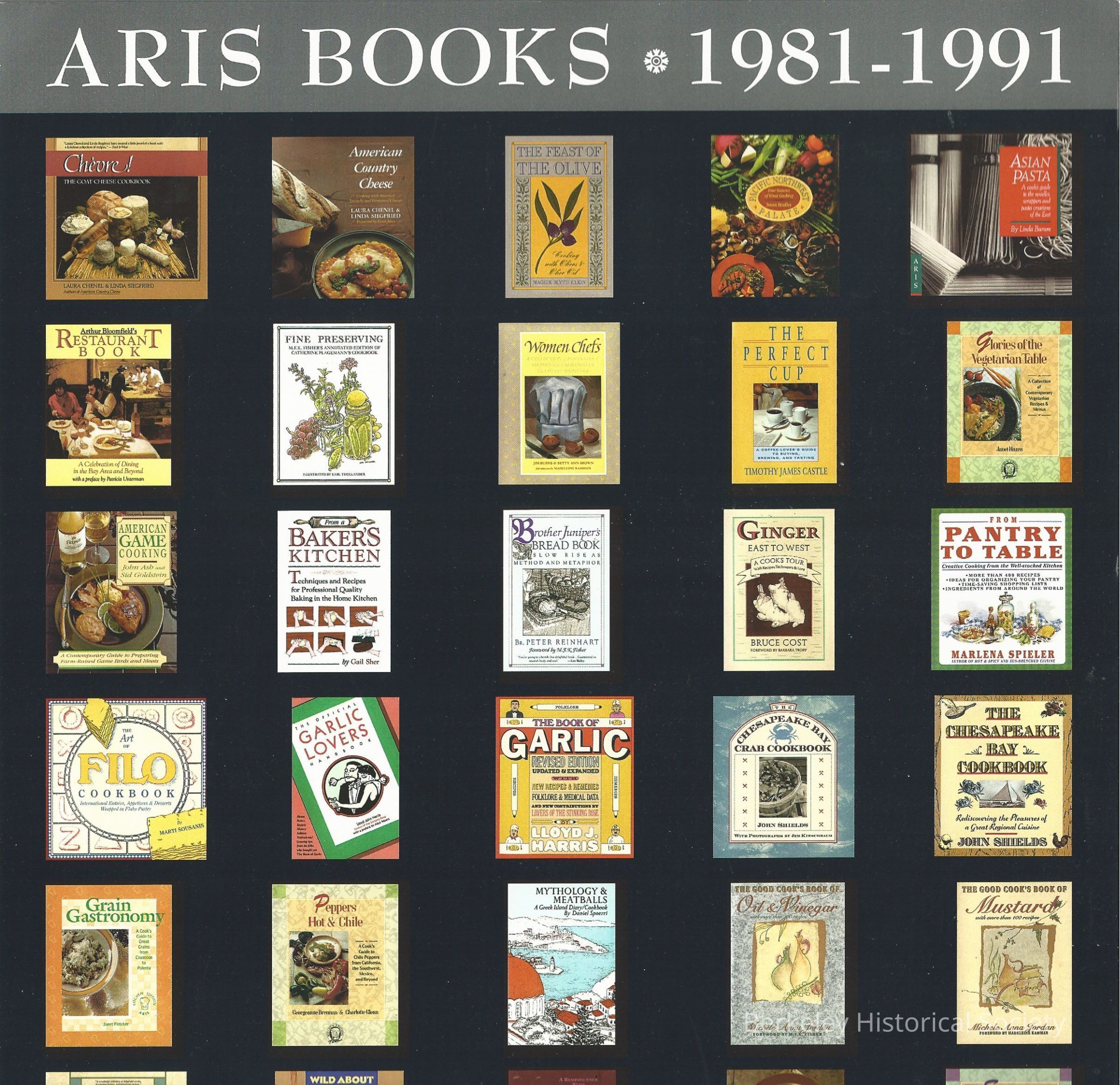 Aris Books, 1981-1991. Shows covers of cookbooks published.