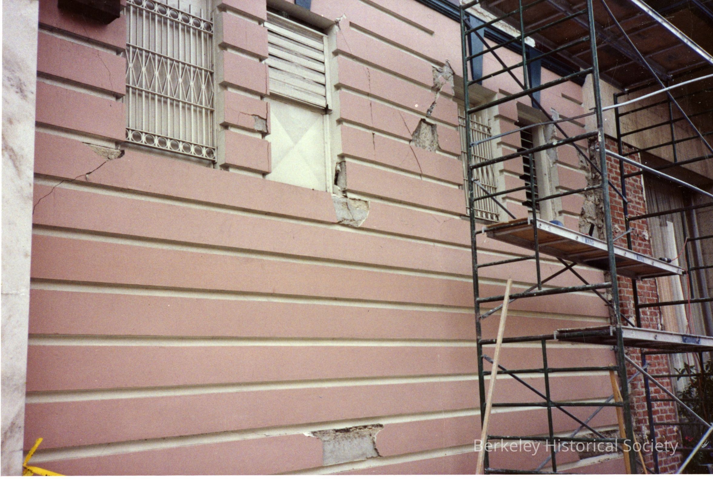Damage to wall of Shattuck Hotel.