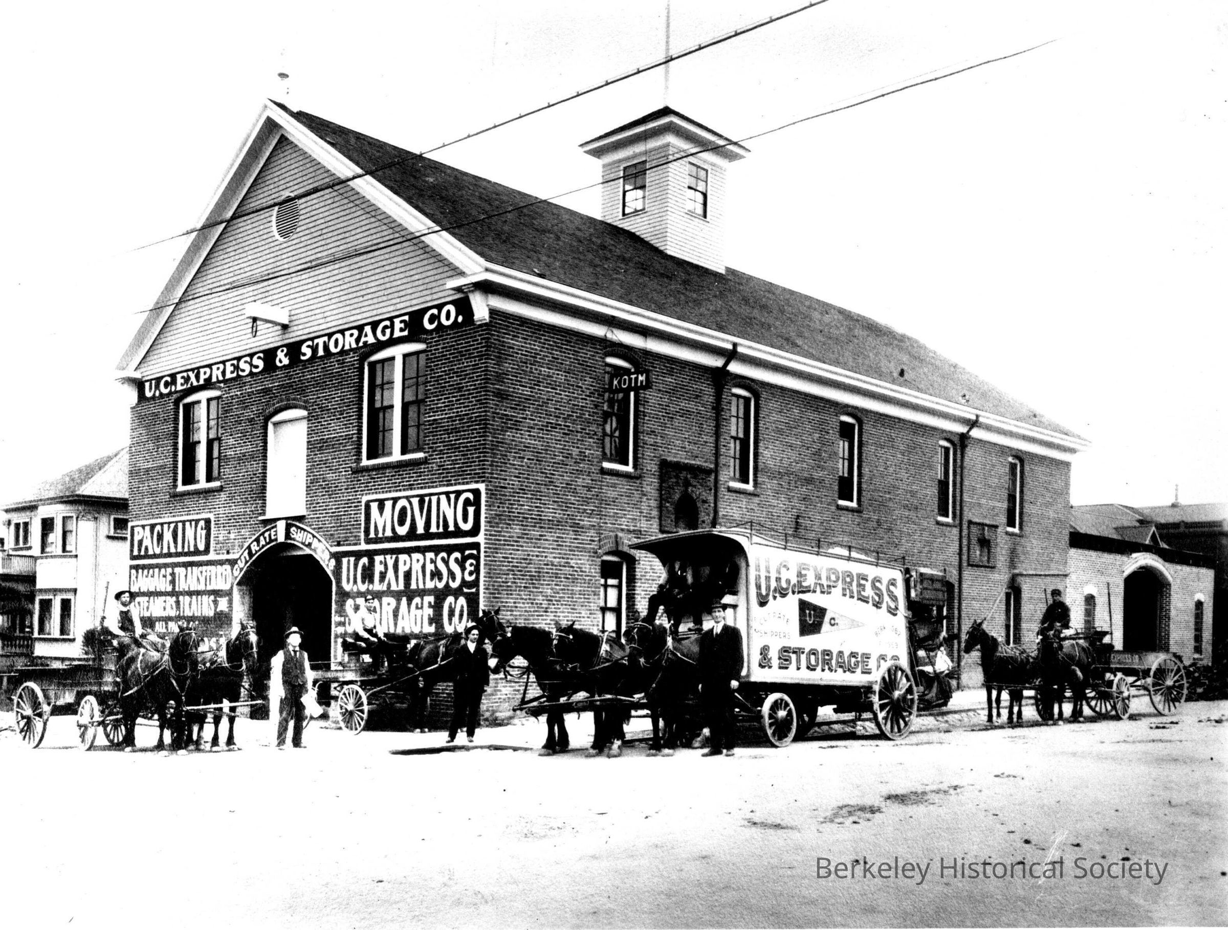 See better version at 213-191-9475 Street scene with horse drawn wagons Berkeley Way & Bonita