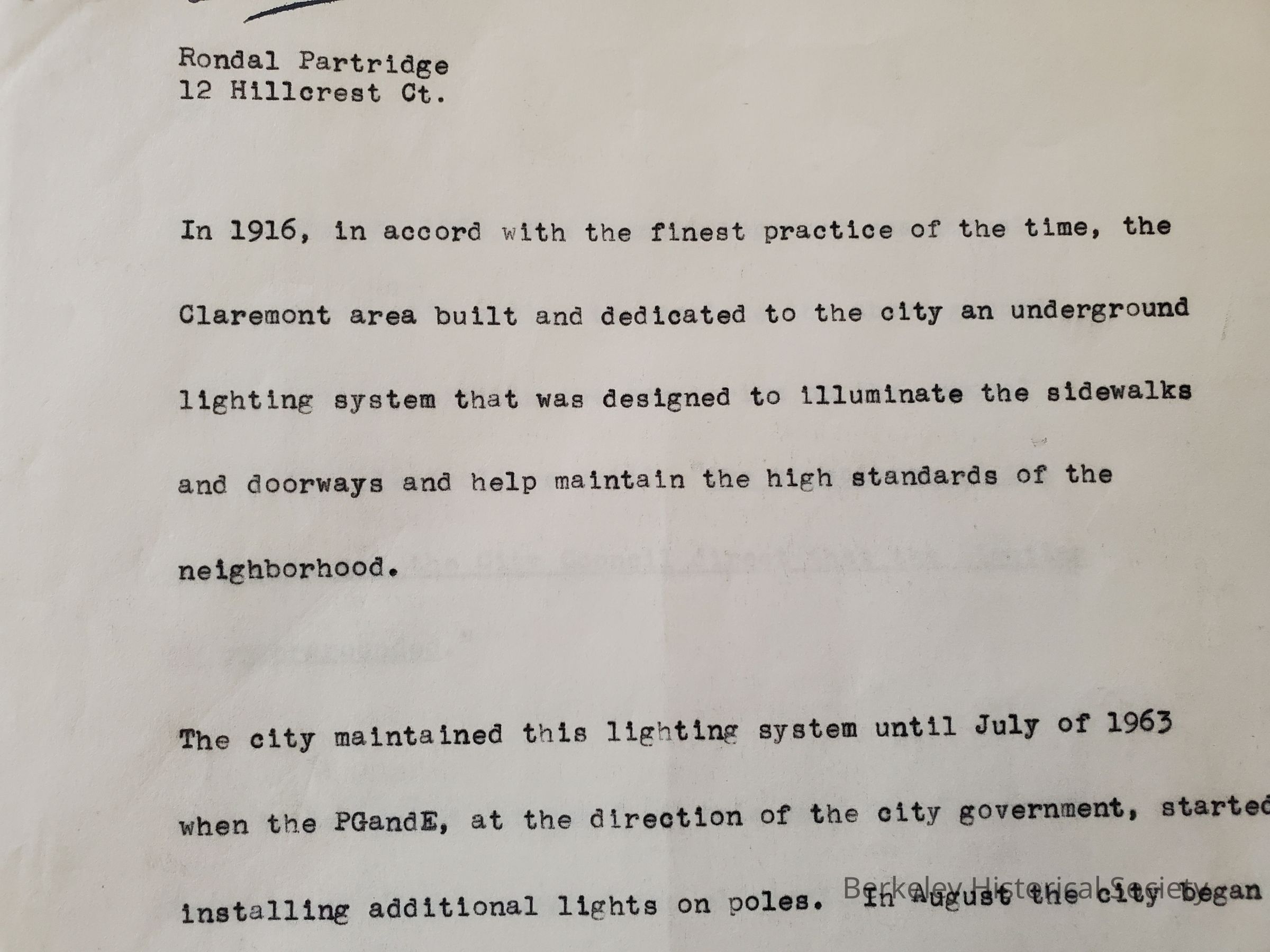 Documents relating to undergrounding of street lighting lines in the Claremont District.Entry/Object ID