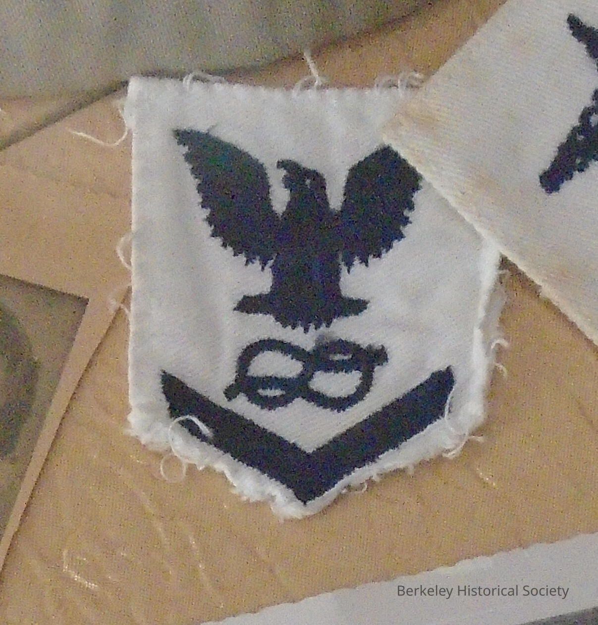 Black and white cloth insignia of an eagle and chevron. Worn by hospital corpsman Charles Richard Mullan, Jr. (Navy-HN-E3, 1st Battalion, 9th Marines..."Doc"). Born 12/16/46, died in Vietnam 6/28/67.