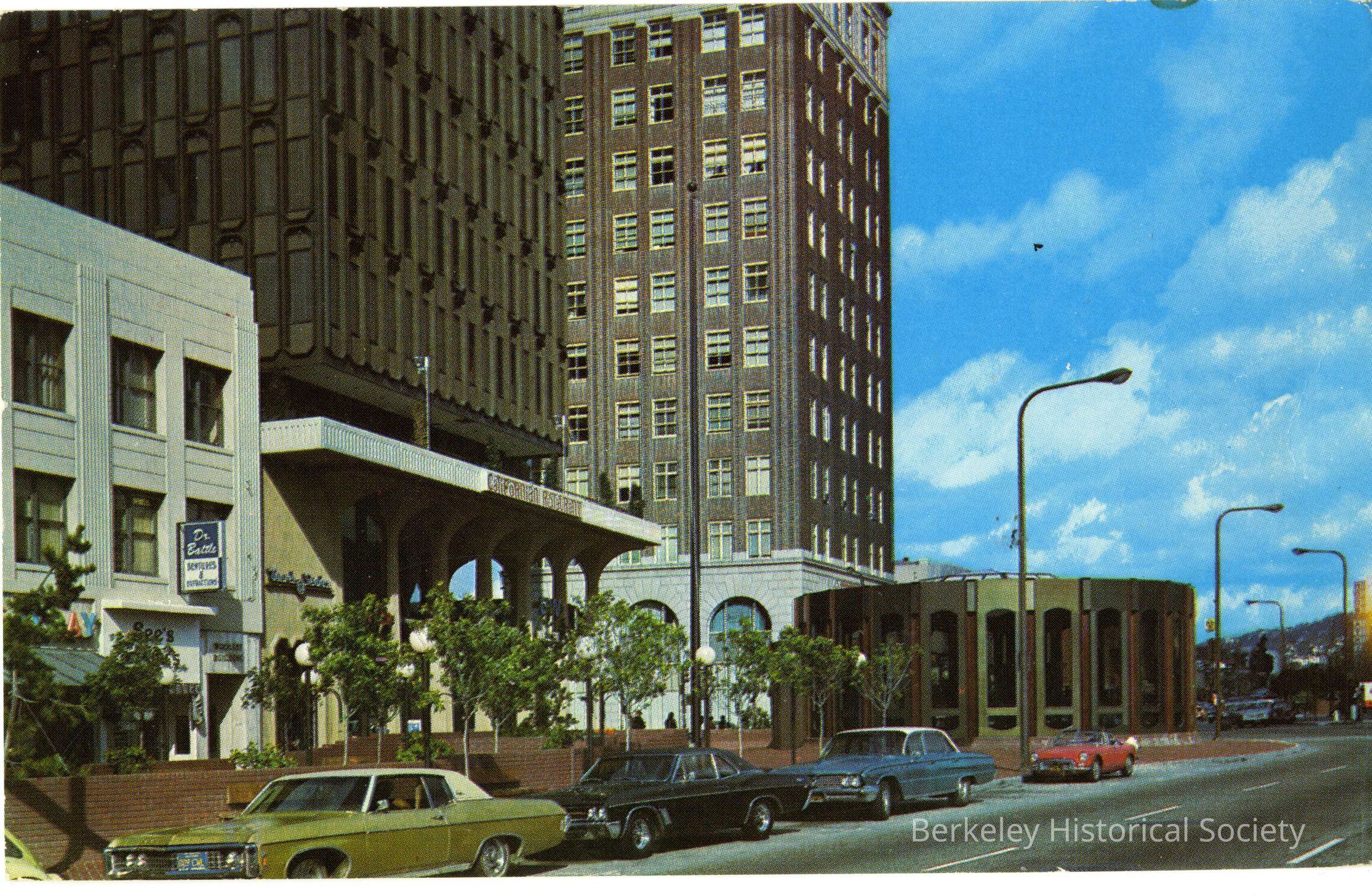 Color photograph of BART Station on Shattuck Avenue and surrounding buildings.