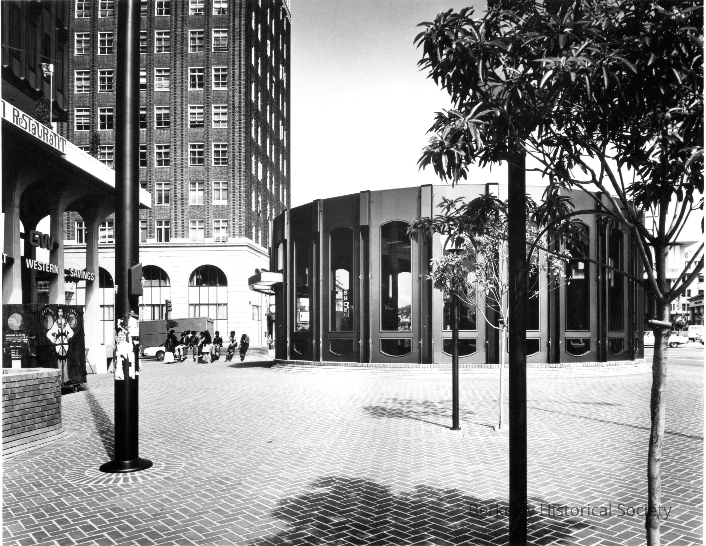 Exterior of BART station, Shattuck Avenue, and surrounding plaza; Wells Fargo in background.Other Names and Numbers