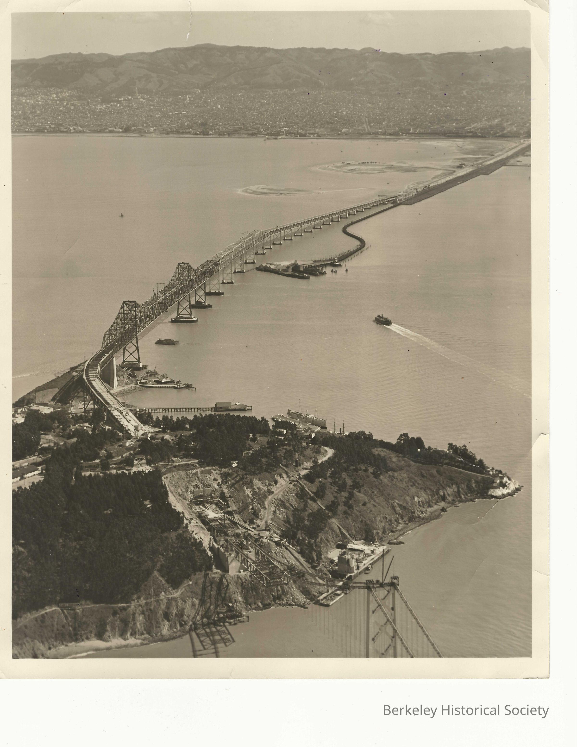 Bay Bridge, Key System Pier, Yerba Buena Island, East Bay Hills, Sather Tower, Aerial