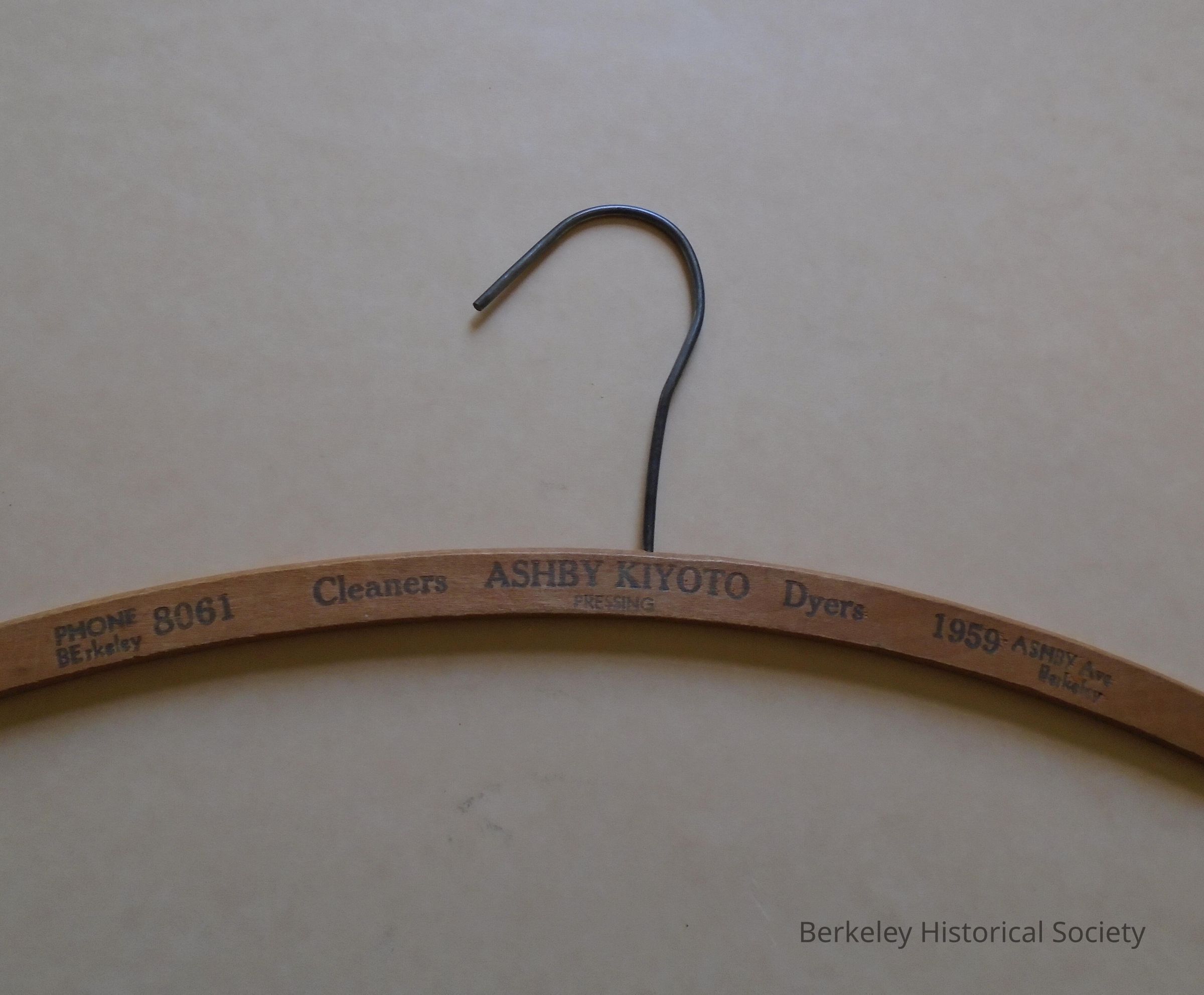 Wood and metal coat hanger. From Ashby Kiyoto, 1959 Ashby Ave., BE 8061.