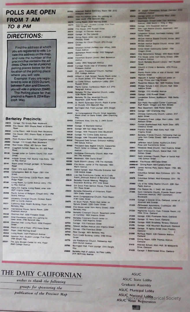 Map of voting precincts, part of Daily Californian, Monday June 4, 1984