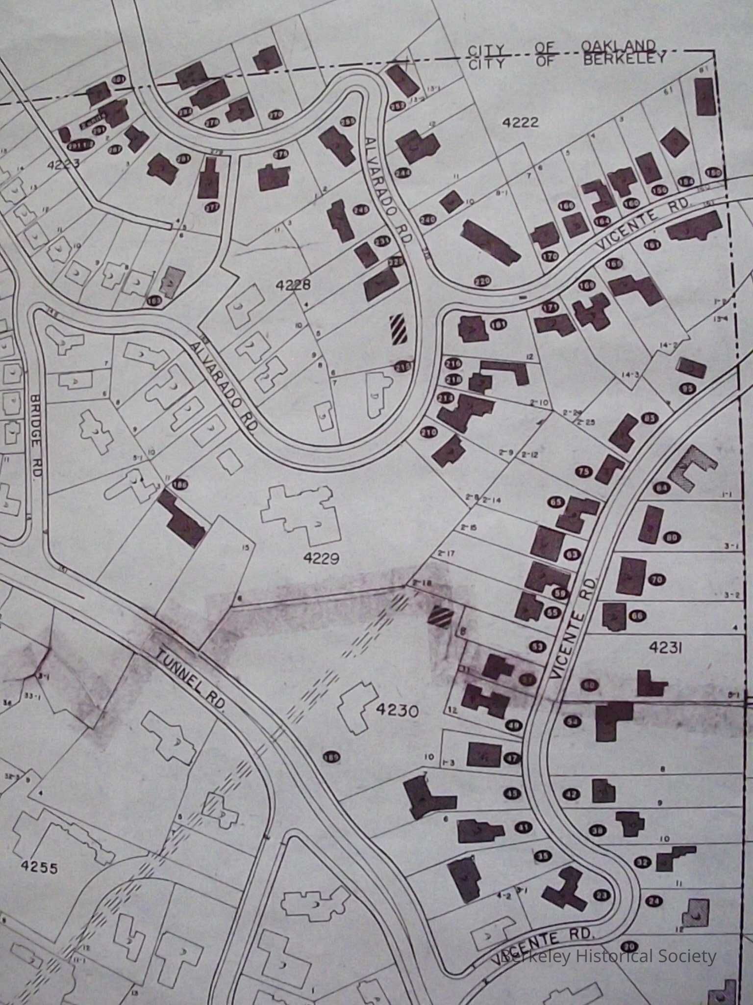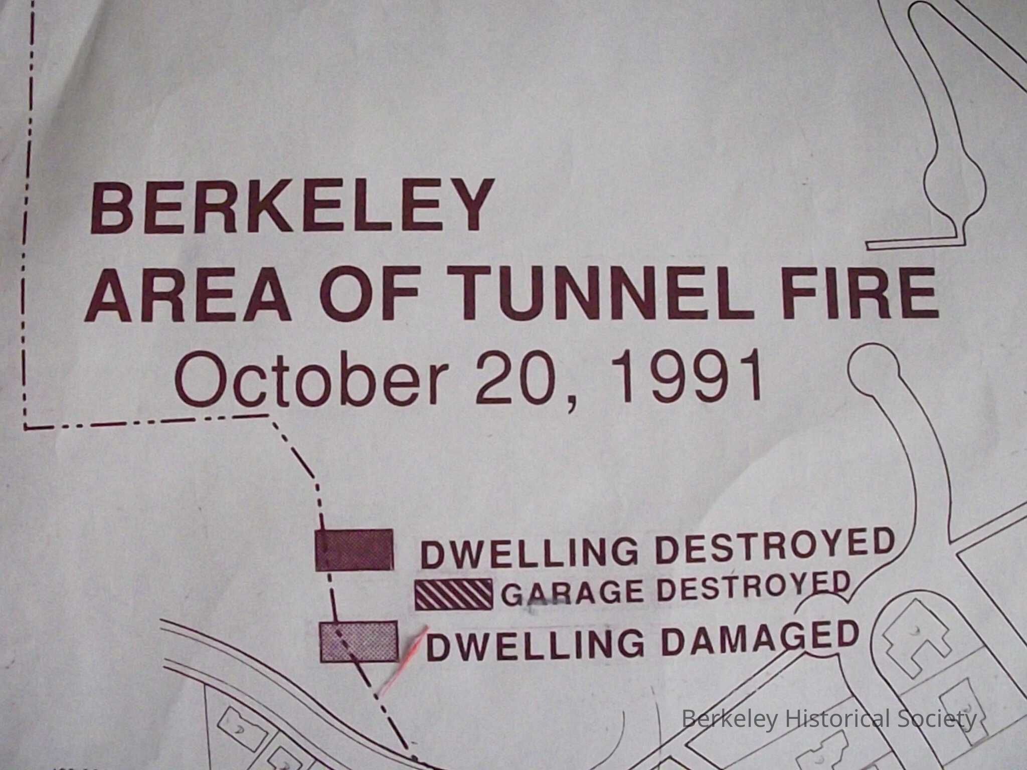 Map showing houses damaged or destroyed in the Tunnel Fire.