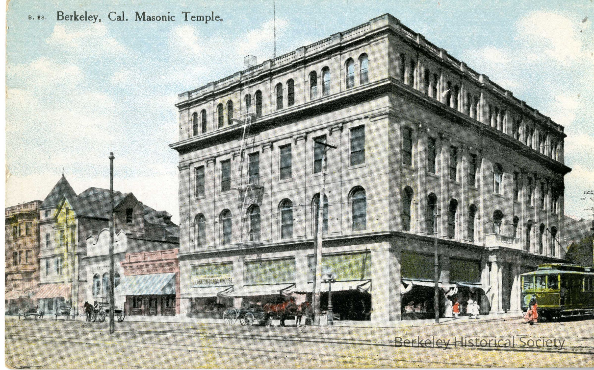Masonic Temple, streetcar, Postcard -Berkely Masonic TempleLocation