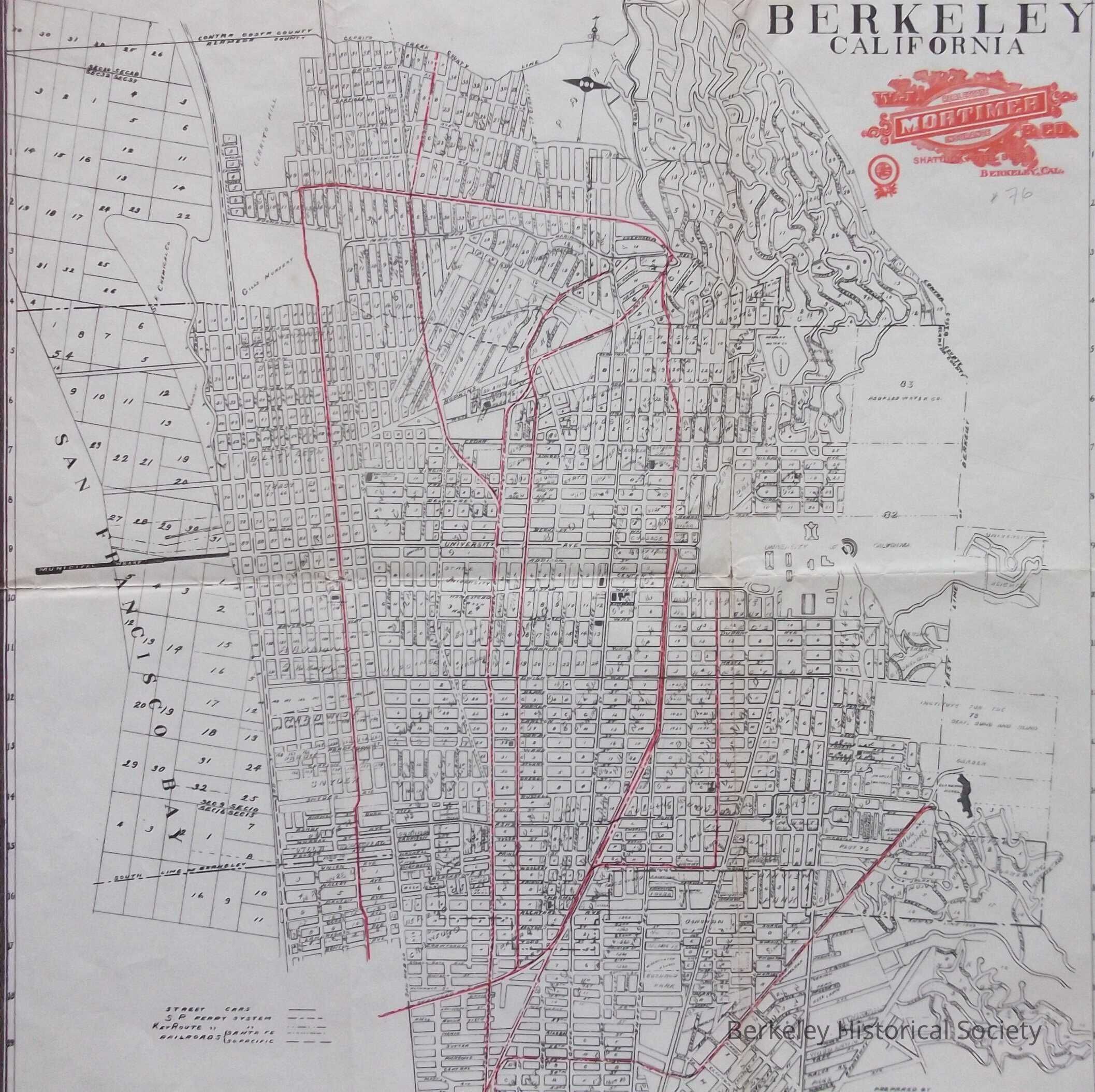 City streets, parcel numbers, Key Routes, railroad lines, S.P. ferry system, streetcar lines. Includes parts of Albany and Oakland.