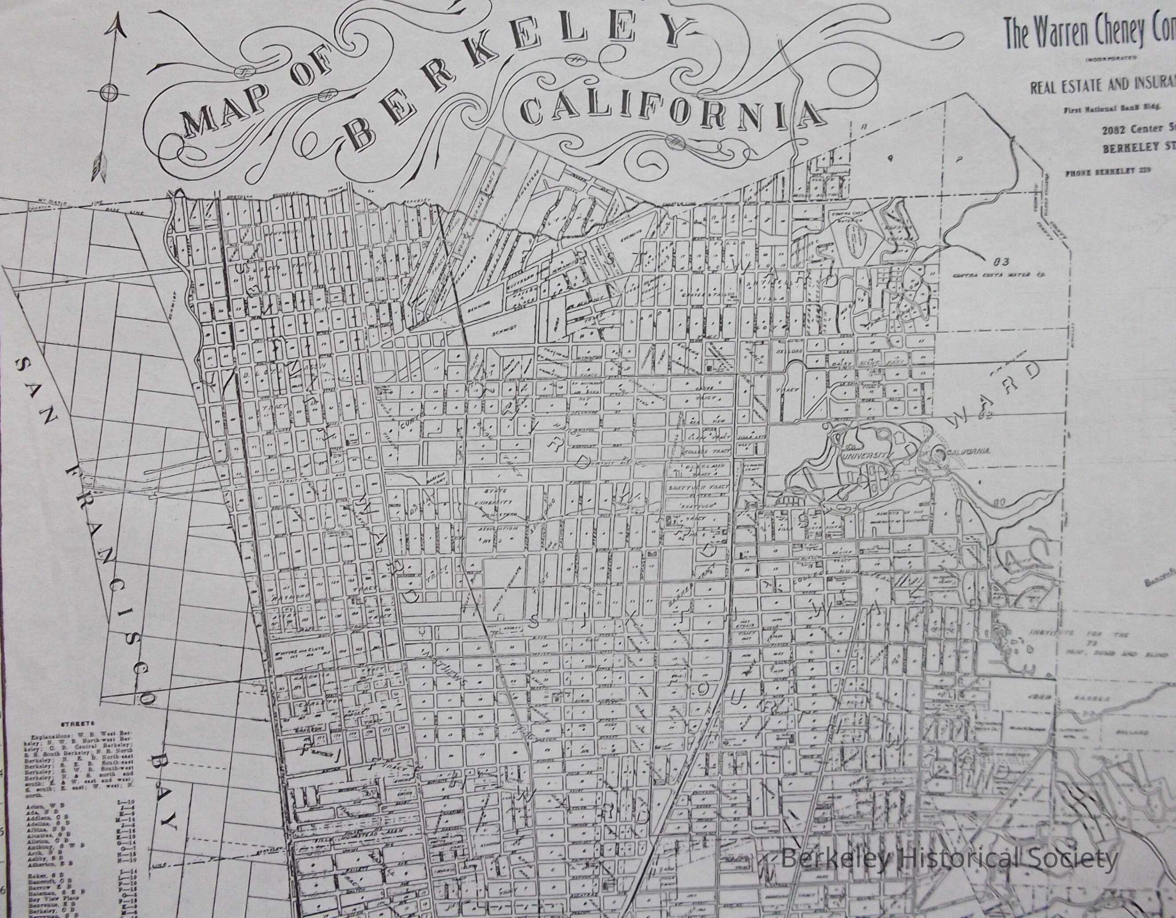 Shows tract names; index of streets along edges. Copyrighted by W.F. McClure, 1906. "Compliments of the Warren Cheney Company" Extent: 1 map ; 24 x 18 in.