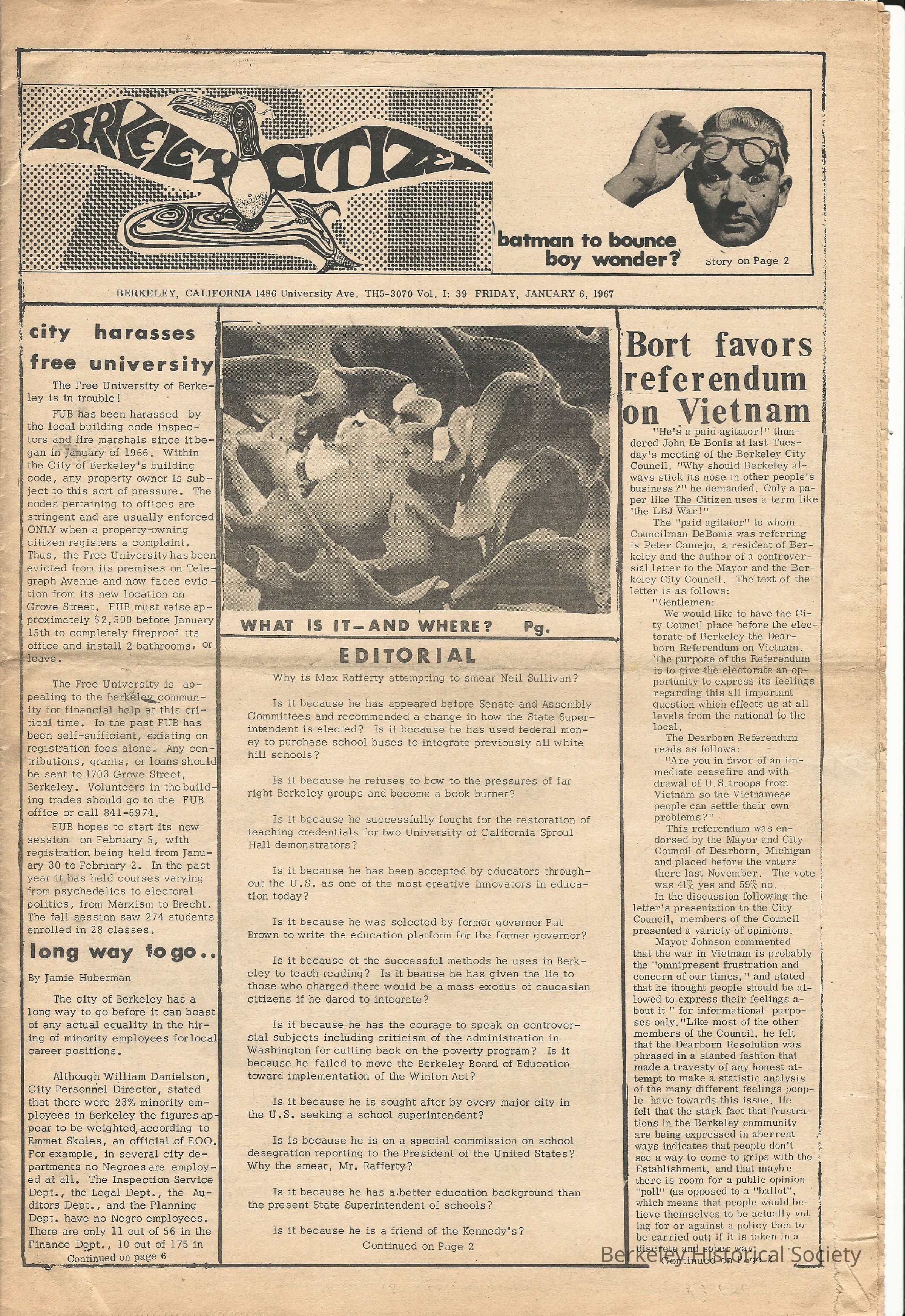 Berkeley Newspaper Cooperative. BHS has: Jan 6, Feb 3, 1967 (v.1:39, v.2)