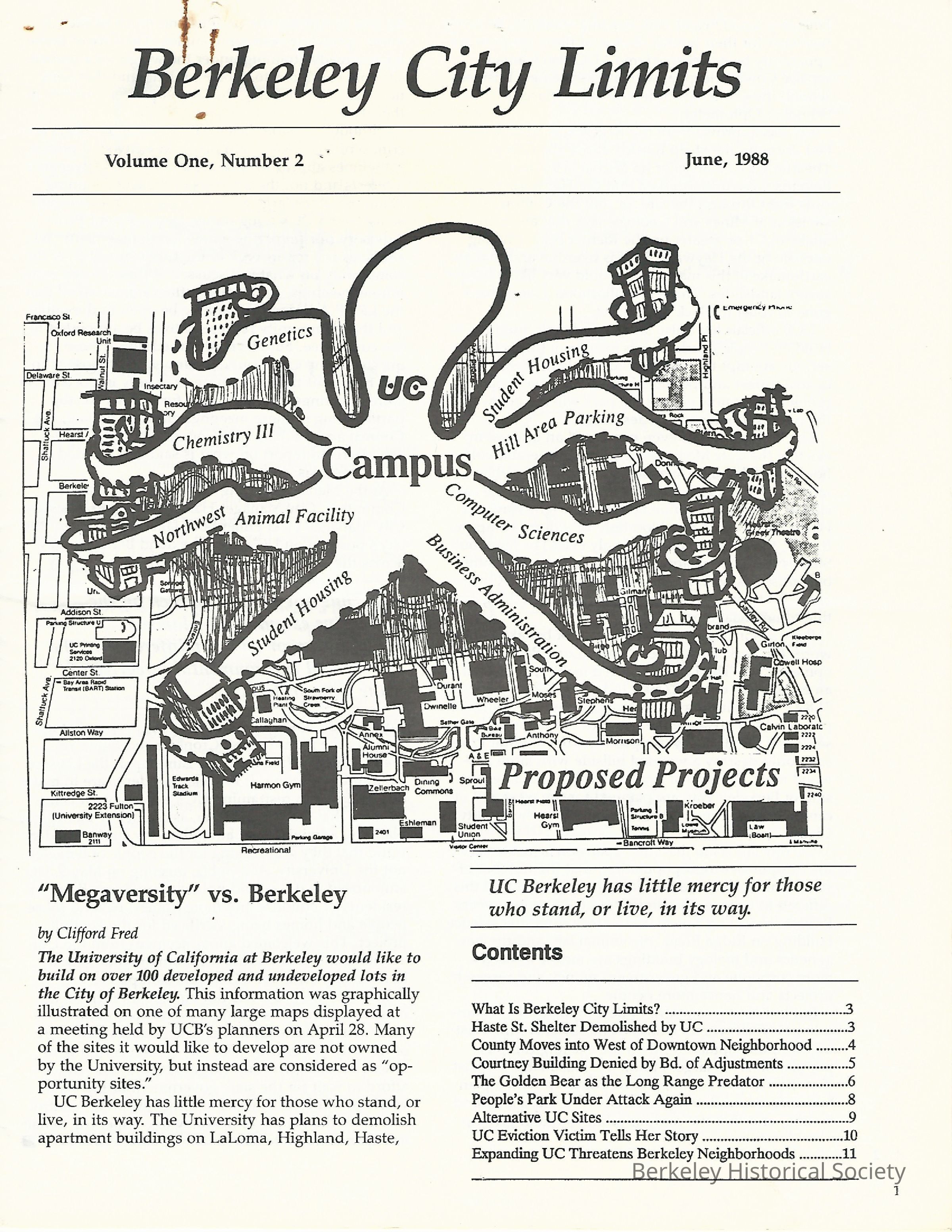 Contains articles on redevelopment issues in Berkeley; v.3:2 specifically against UC expansion.