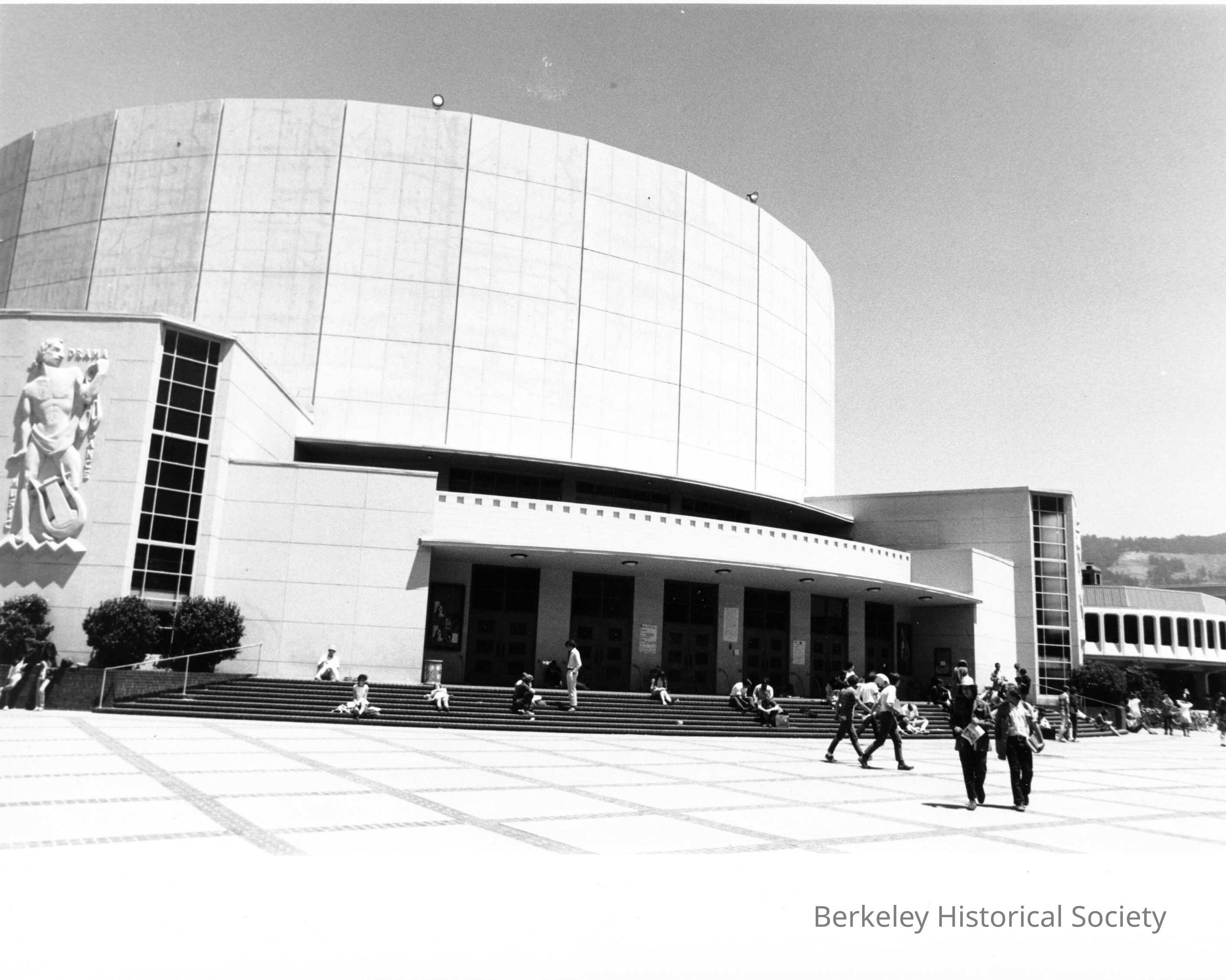 Berkeley Community Theater exterior; (p/o Berkeley High School), people.