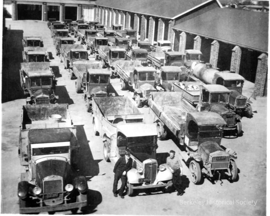 Lines of trucks parked Corporation Yard on Allston Way.Made/Created