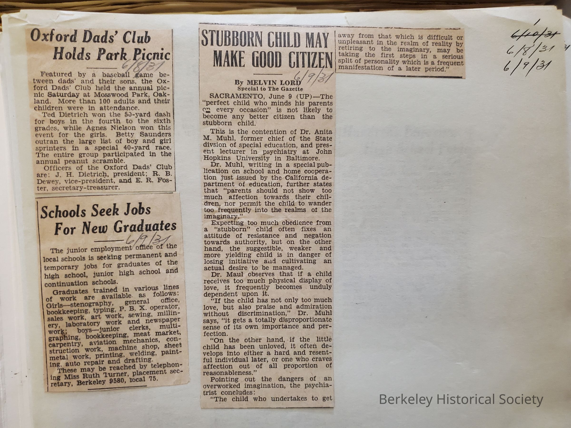 Berkeley Gazette clippings re Berkeley schools, 1930-1940Entry/Object ID