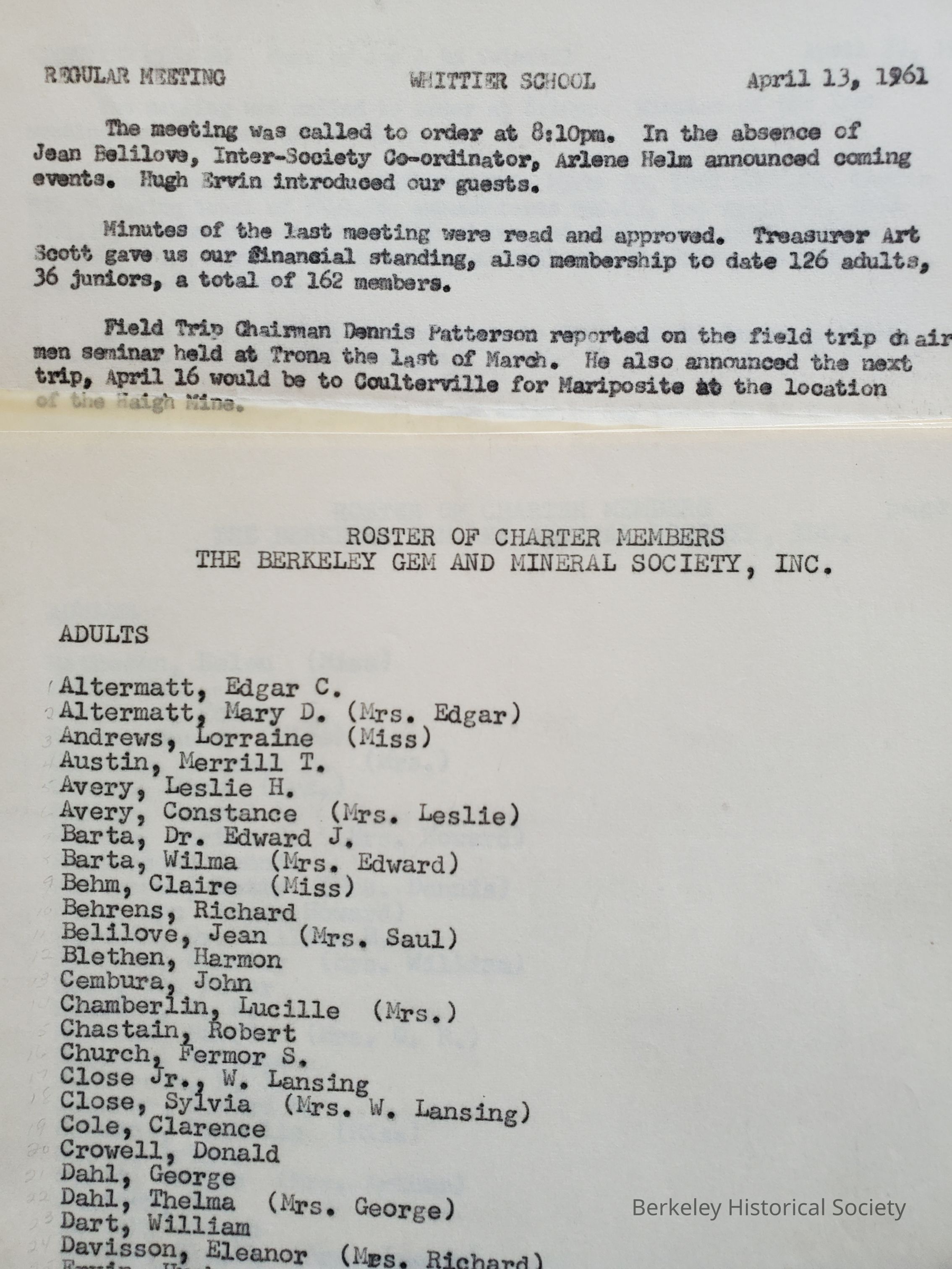 Berkeley Gem and Mineralogical Society records.