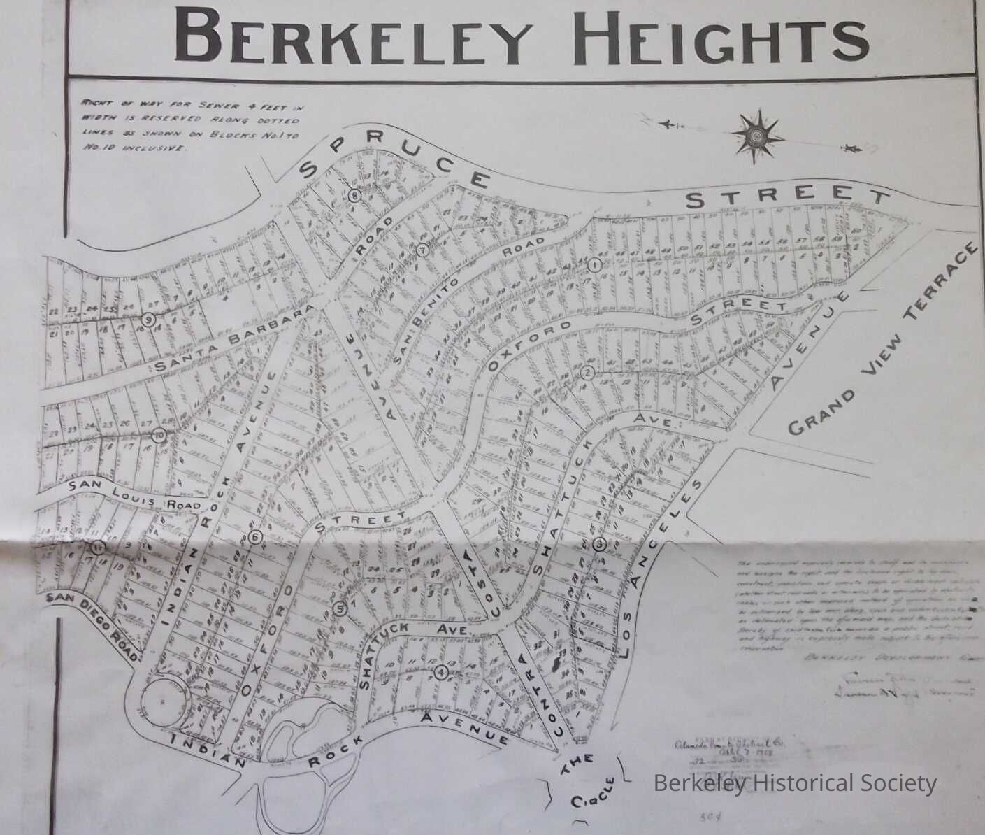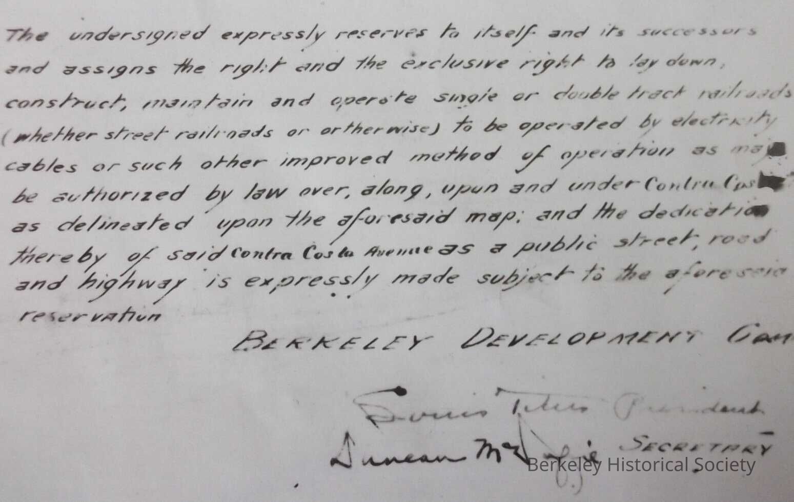 Tract map filed April 7, 1909, Circle to Spruce, Contra Costa avenue, later named Marin, Berkeley Development Company (officers Louis Titus, Duncan McDuffie), (adjacent to Grand View Terrace. ....reserves right to operate railroad to be operated by electricity, cables ... on Contra Costa AveLexicon
