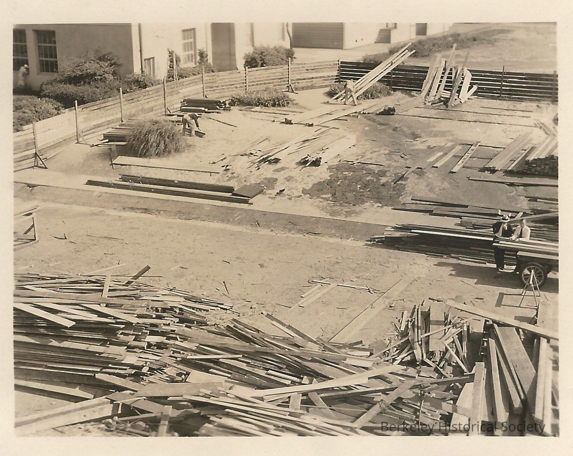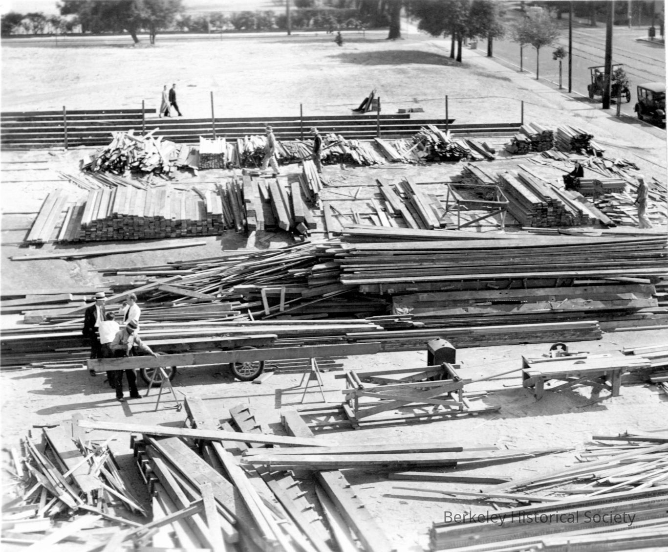 Piles of lumber following tearing down Grove Street building.Other Names and Numbers
