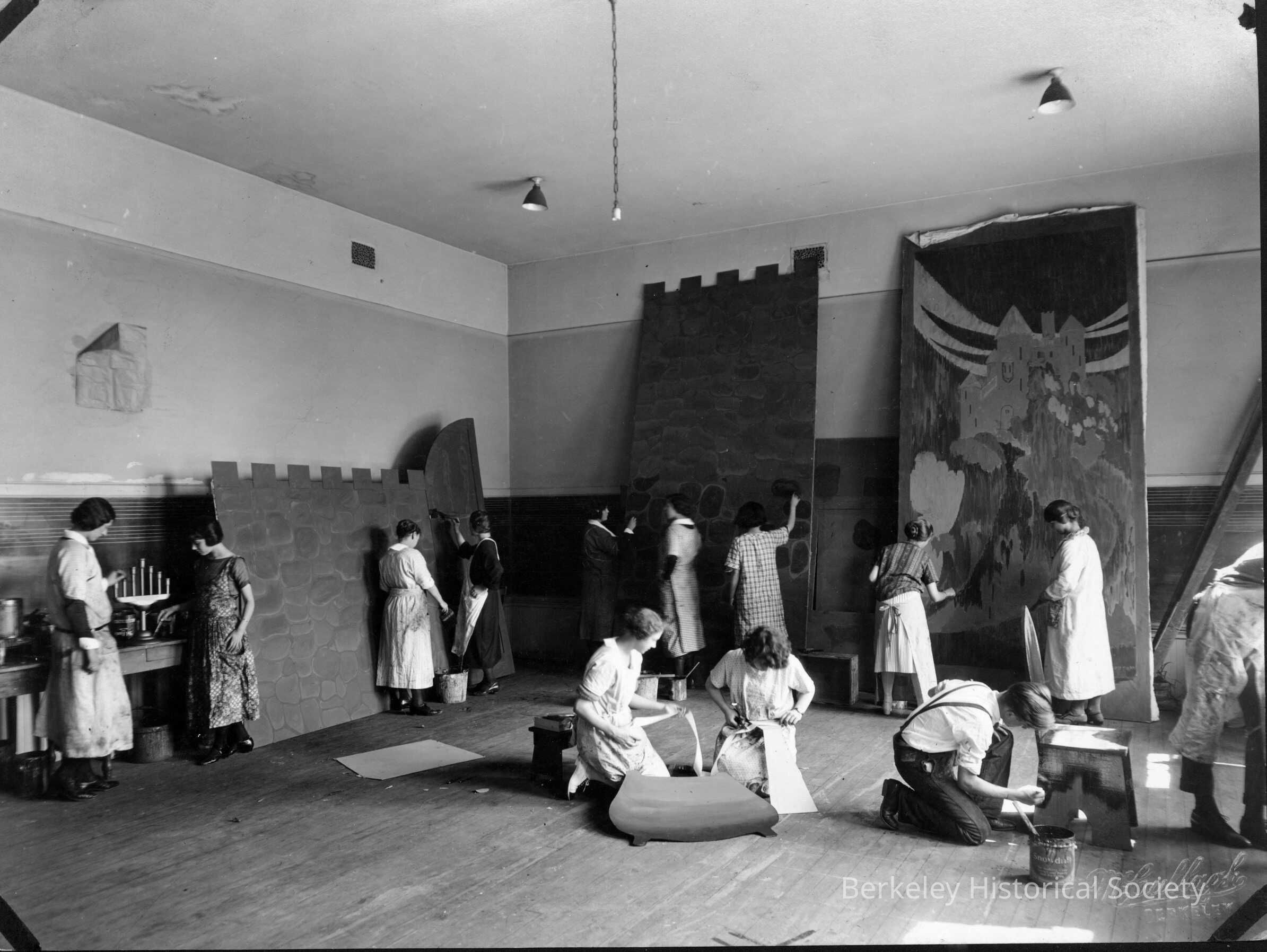 Berkeley High School, stagecraft class (making scenery for Macbeth). Students.