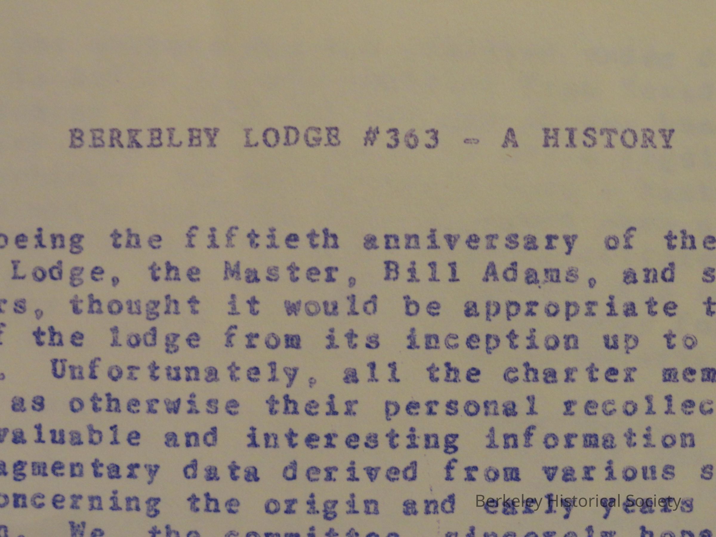 Berkeley Lodge #363 - a history
