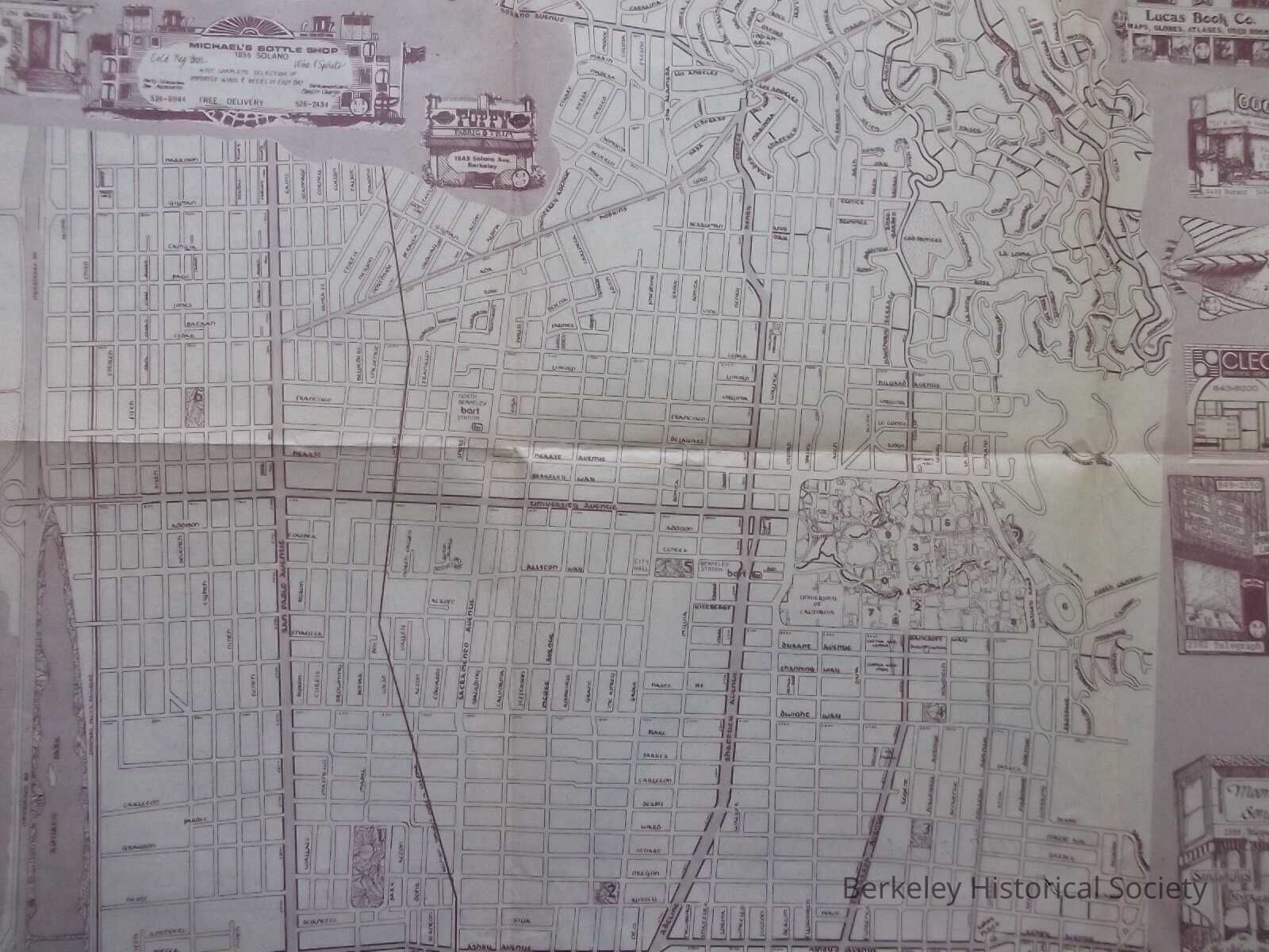 map of Berkeley streets and shops, including a 1975/76 calendar. Community Access Directory of shops.